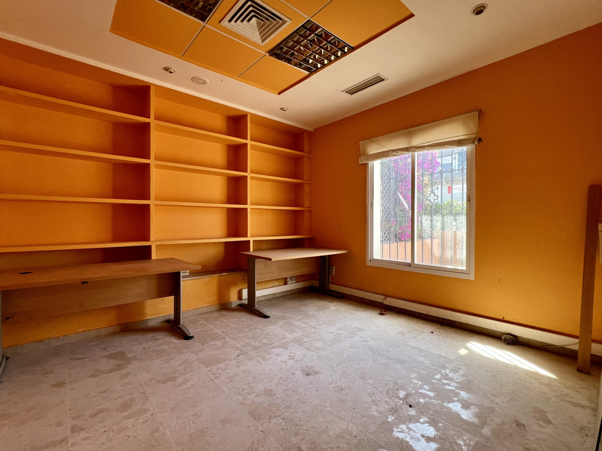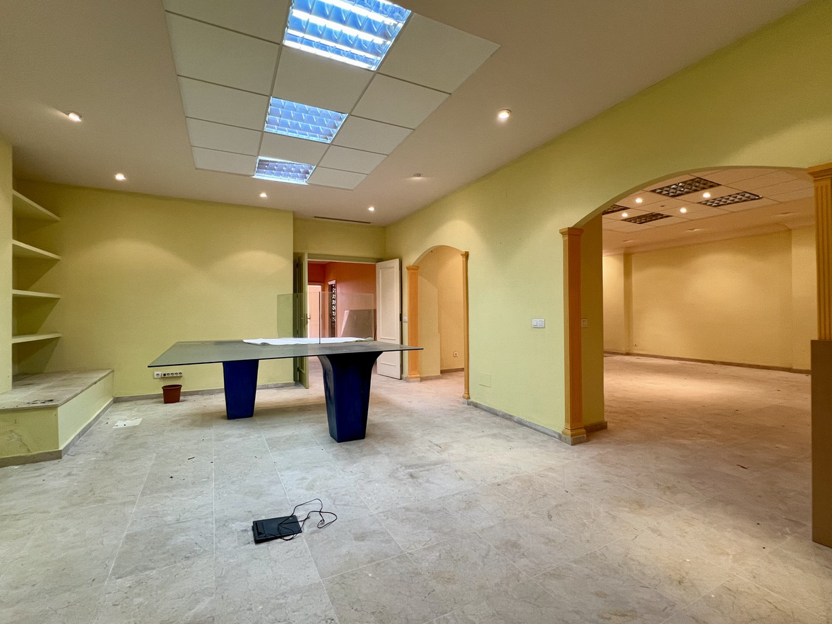 Spacious commercial premises in Guadalmina Alta, next to the Guadalmina IV Shopping Center. Located in an unbeatable area close to golf courses and numerous shops and businesses. Currently, it is divided into two units. Ground floor on the right side, features several offices and meeting rooms, a restroom, a kitchenette and a large open terrace. Underground garage included in the price. Just a few minutes' drive from San Pedro de Alcántara or Puerto Banús. The property can be rented or sold as a single unit or separately.
