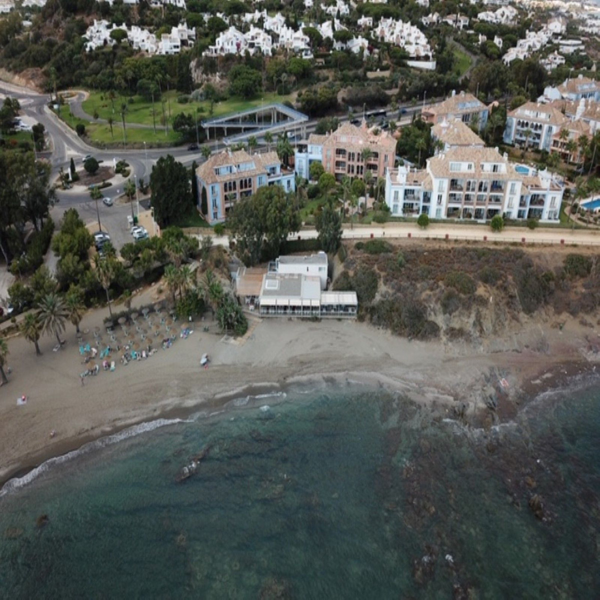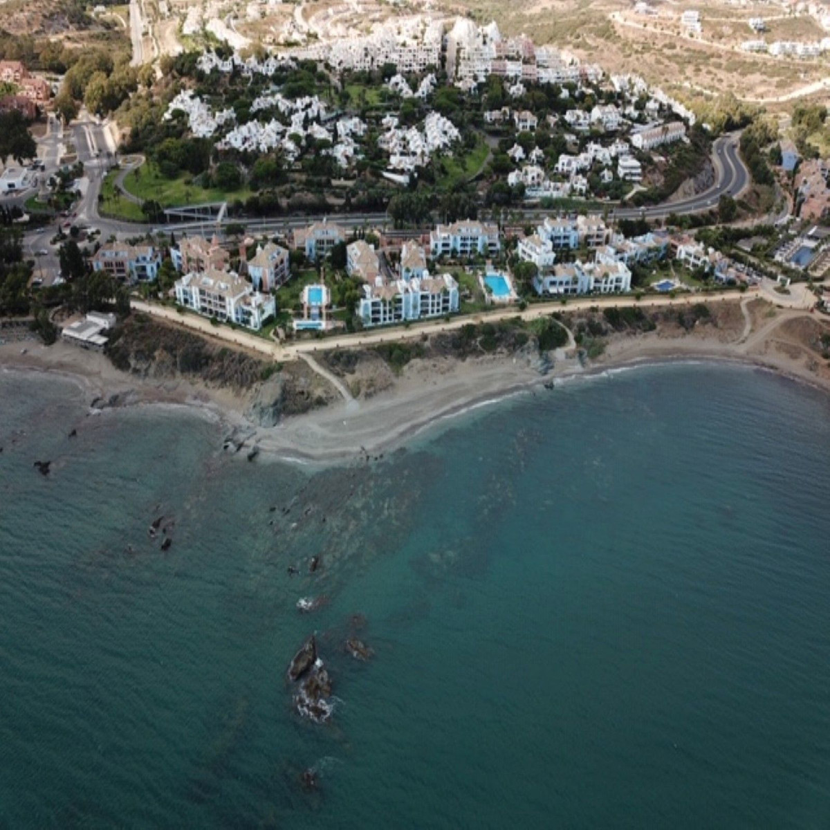 NEW TO THE MARKET: IMPRESSIVE FIRST-LINE BEACH APARTMENT, GROUND FLOOR, CORNER UNIT, with a PRIVATE GARDEN perfectly maintained by the community, offering SPECTACULAR VIEWS OF THE SEA, THE BEACH, GIBRALTAR, AND AFRICA. Located in the beautiful Bay of Casares, next to a protected historical area with an ancient Arab tower, within the stunning La Perla de la Bahía complex, beautifully designed by fusing Andalusian and Arab styles. Surrounded by lush gardens, magnificent pools (2 heated), a wide variety of decorative fountains, and relaxation areas designed for ultimate enjoyment. Only a 2-minute walk to 3 different beaches, 2 renowned restaurants, and the prestigious Finca Cortesín golf resort, which is awarded every year as the Best Golf Resort in Spain, is ranked among the 50 best golf courses in the world, and hosted the prestigious Solheim Cup competition in 2023, among others. Strategically located between Estepona and the charming Puerto de la Duquesa and the village of Sabinillas, all just a 5-minute drive away, offering access to a wide range of shops, restaurants, leisure activities, and different golf courses. The gated community offers 24-hour security and video surveillance, ensuring peace of mind and safety. This property includes 2 parking spaces in a garage and 1 large storage room. All of this makes it not only a dream residence but also an outstanding investment opportunity with high rental potential. A unique property that must be seen!