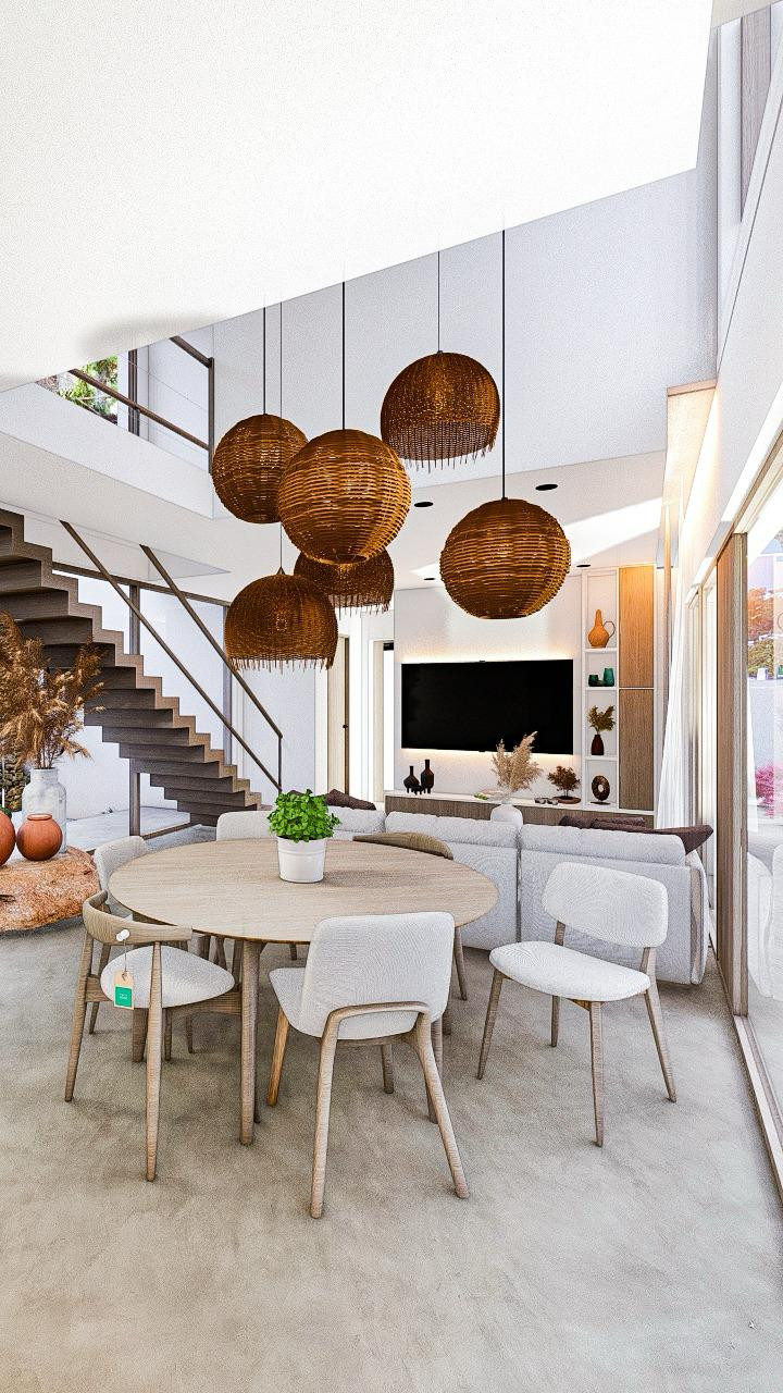 The house is distributed over two floors. On the ground floor, there is a spacious double-height living room with large windows that flood the space with natural light and open directly to the pool. There is also a dining room, a fully equipped independent kitchen with the best appliances and furnishings, a bedroom, and a full bathroom. The kitchen is directly connected to a fully equipped outdoor barbecue area with sea views.