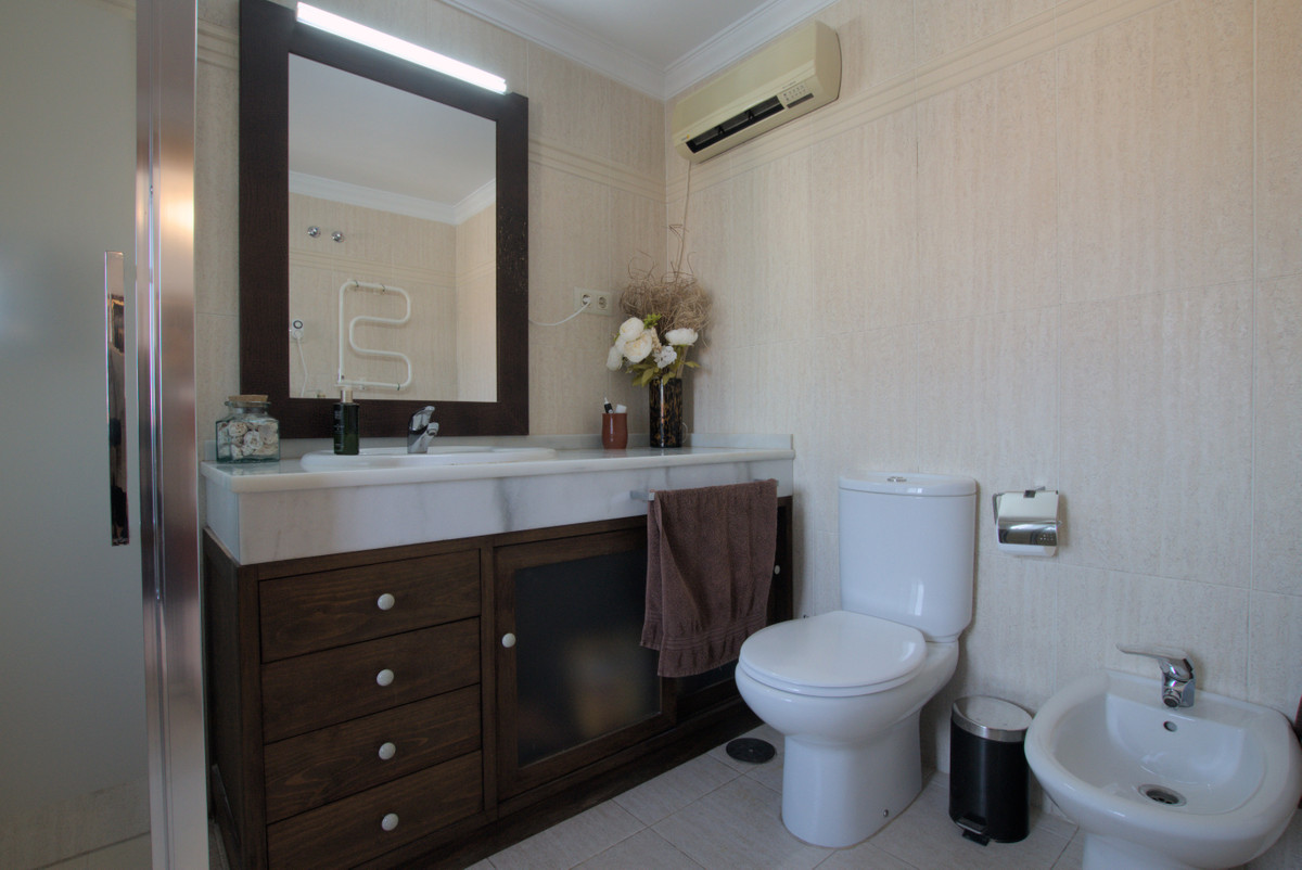 Its distribution offers well-used spaces and a welcoming atmosphere. On the entrance floor, the living room with dining area and fireplace that heats the entire house. On the upper part, three bedrooms, a full bathroom and one en suite, in the master bedroom, which also has a small terrace with beautiful views.