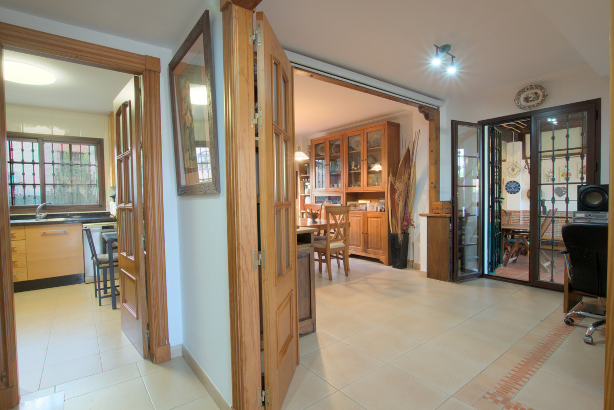 It also has a gazebo, completely isolated and habitable, that leads to the back where the private saltwater pool and rear outdoor patio with stone floor are located. There is also an outside shower and shaded areas under a covered porch. Or front exit to another patio with space for a barbecue. Garage for two cars, spacious and multifunctional, with enough space to park two vehicles. In addition, it can be used as a workshop or storage, as it has additional space for storing belongings, tools... ideal for keeping the house tidy. This home offers a perfect balance between functionality and comfort, with spaces designed for family life and outdoor enjoyment.