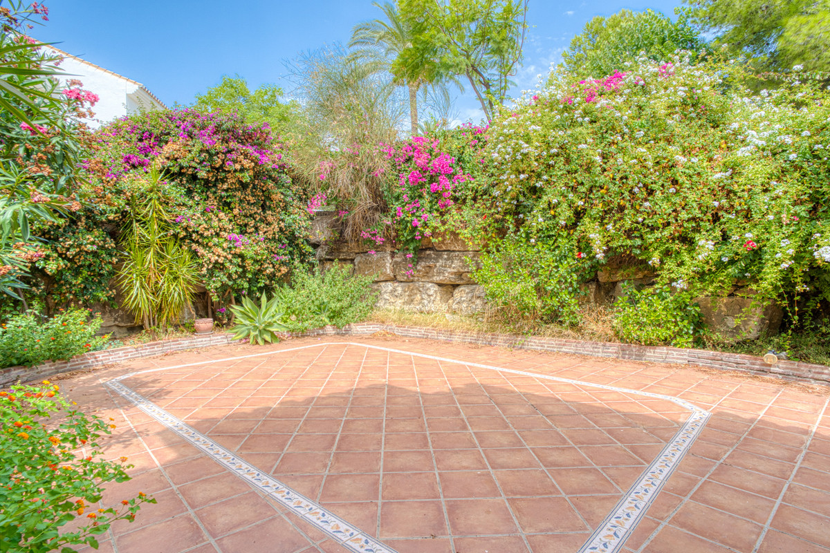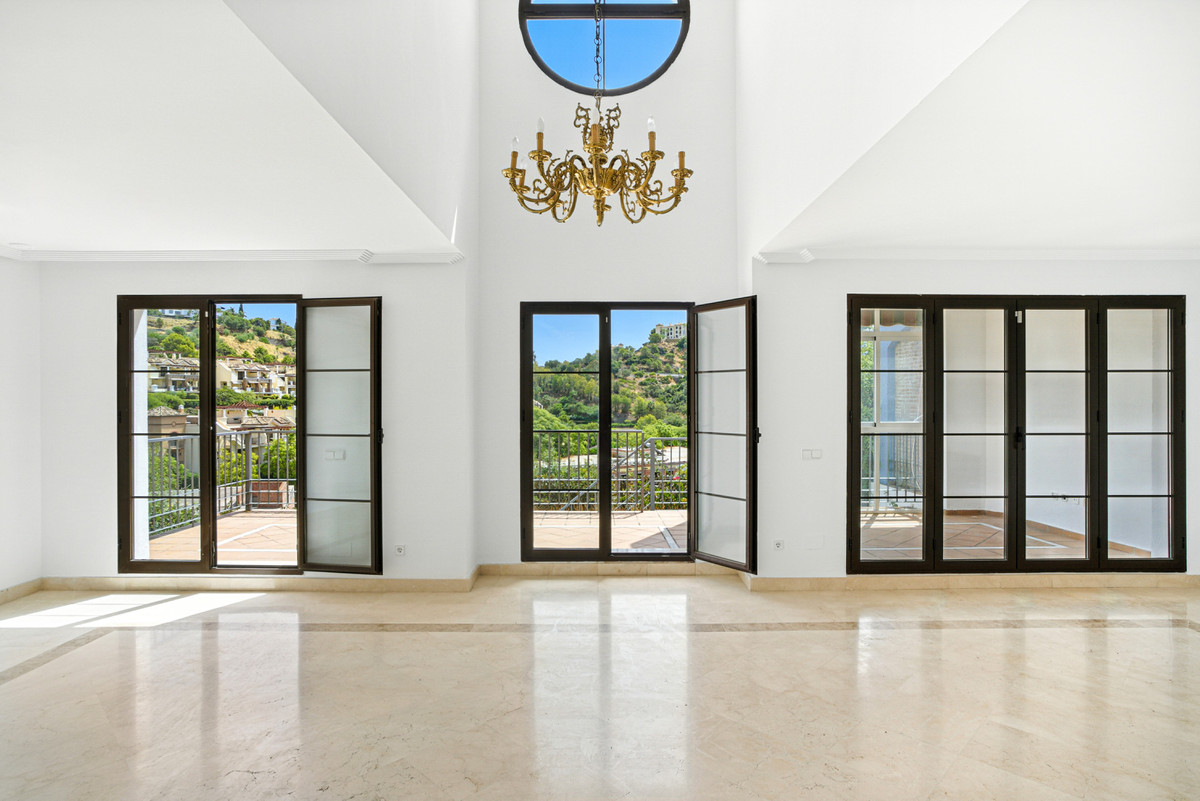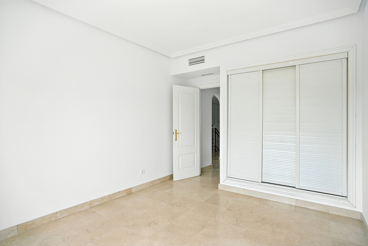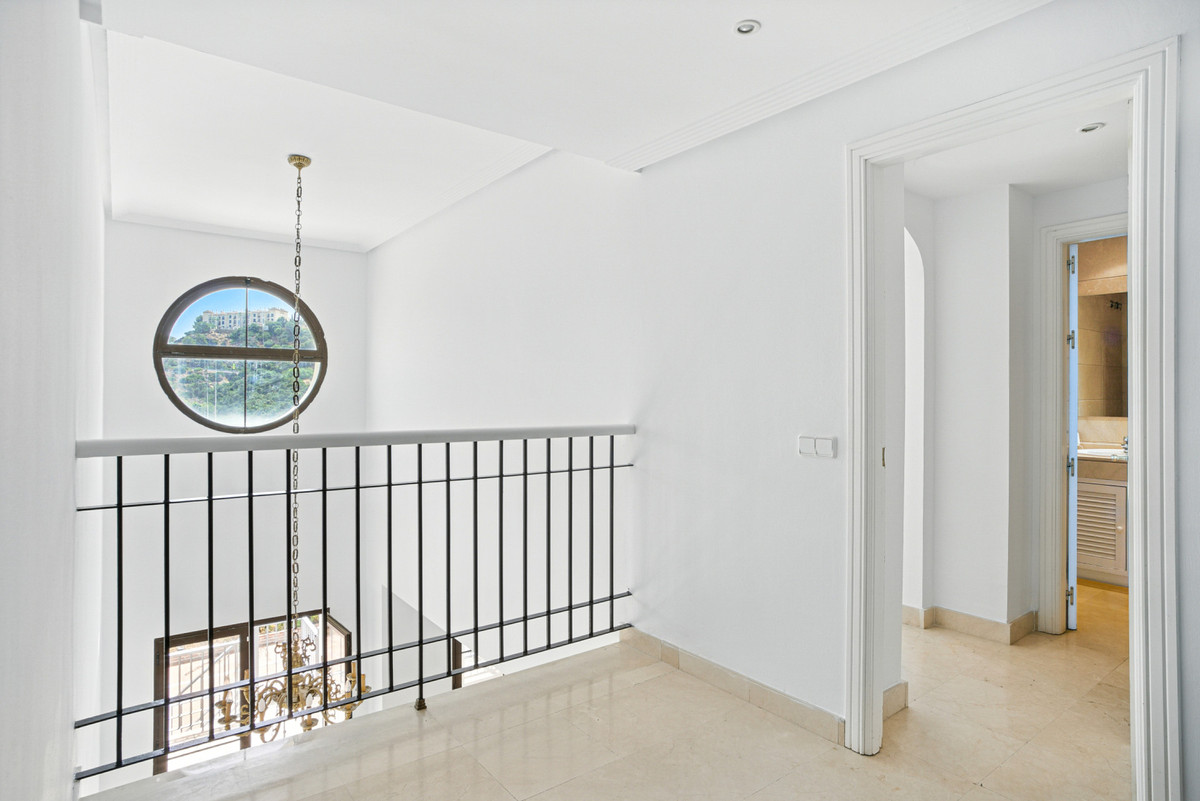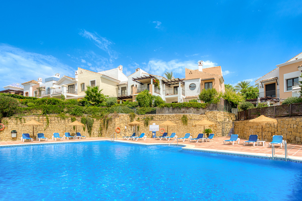 This elegant townhouse is tucked away in the serene and exclusive gated community of Los Almendros, part of the renowned Los Arqueros Golf community, and offers exceptional potential to create additional bedrooms thanks to its generous layout. Spanning three versatile floors, the home features extensive terraces, a private garden and spectacular country views, with lush communal gardens and two pools providing a peaceful backdrop while remaining close to La Quinta, San Pedro de Alcántara and a short drive from Marbella. The main floor includes a spacious lounge with fireplace, dining area, fully equipped kitchen with laundry room, and an extra room with bathroom ideal as an office or additional bedroom, all flowing out to a large entertaining terrace. Upstairs are three well-sized bedrooms, including a master suite with private terrace and two guest bedrooms sharing a family bathroom. The naturally bright basement, with independent access offers superb flexibility to create a guest apartment, home gym, further bedrooms or ample storage. Additional features include fitted wardrobes, private garage for one car and air conditioning throughout.