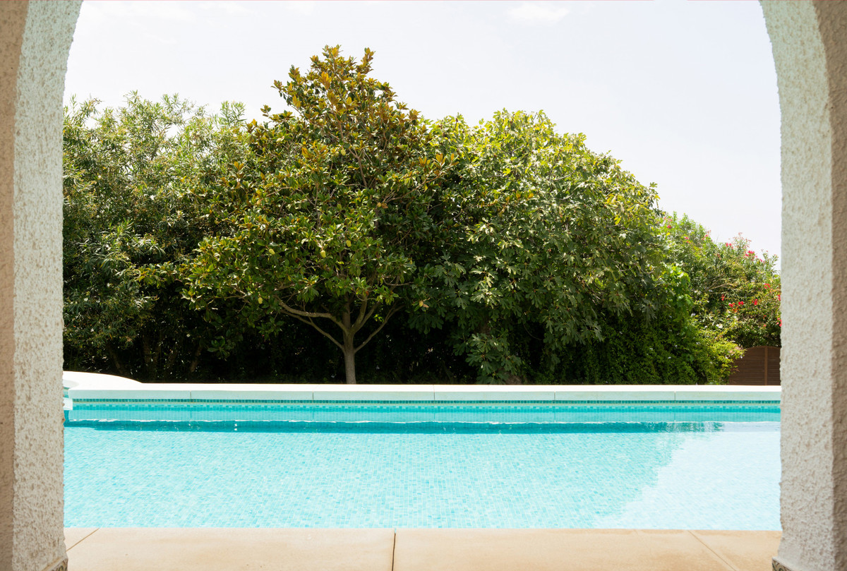 The lush, private garden forms a green oasis, ideal for outdoor living, entertaining, or simply enjoying the year-round Mediterranean climate.