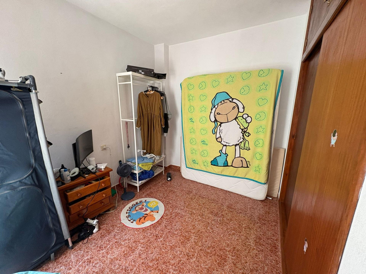 The property is distributed over two floors plus a spacious rooftop terrace. On the ground floor, you'll find one bedroom, a small bathroom, a cozy living room, and a functional kitchen with access to a small patio. The second floor features two bright bedrooms and a full bathroom. The terrace, approximately 45 m², includes a laundry room and boasts beautiful sea views, making it the perfect space to relax, enjoy outdoor dining, or create a chill-out area.