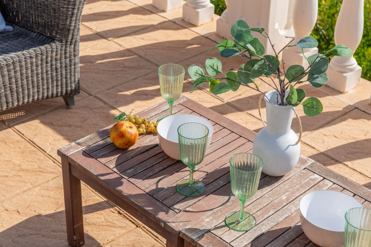 Outside, a 51 square metre pool is surrounded by a 162 square metre terrace ideal for sunbathing. The exterior also includes an outdoor shower, a barbecue area, a landscaped zone with fruit trees and palm trees (204 square metres), a lawn area (65 square metres) and a surrounding terrace (122 square metres).