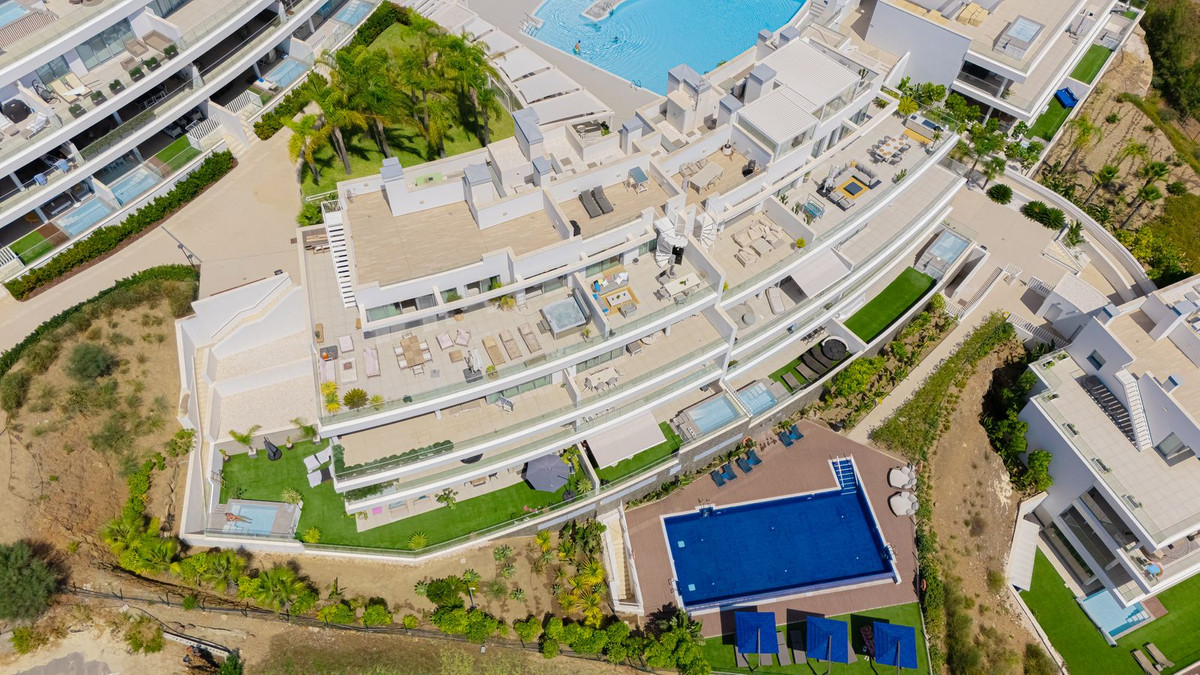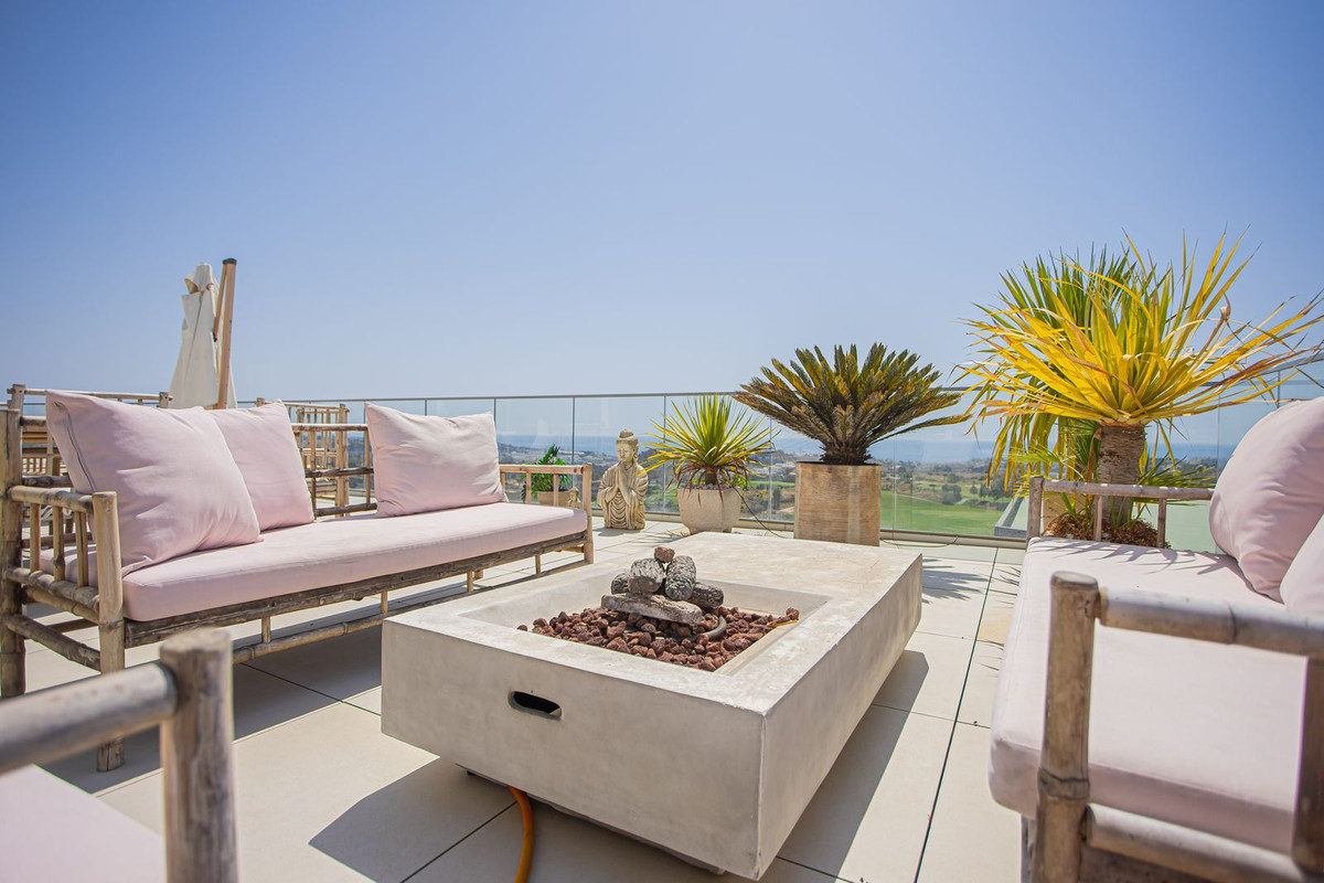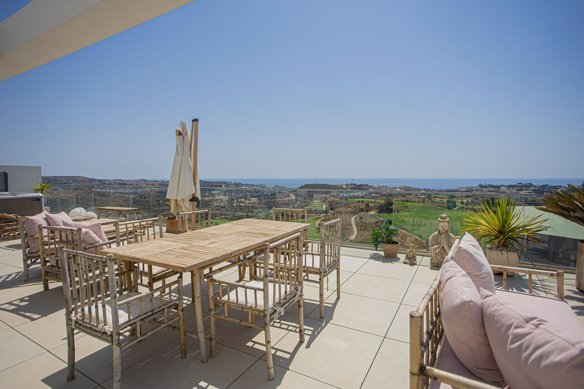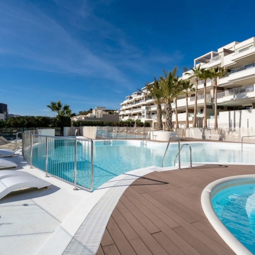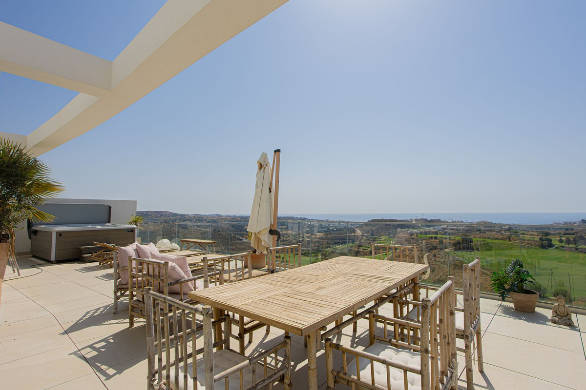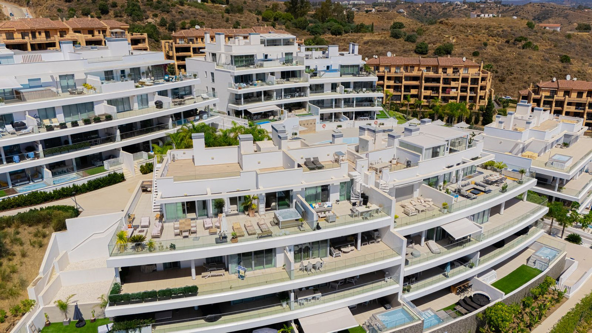 Perched above the green fairways of Calanova Golf Club, this exceptional penthouse offers 87 m² of refined interior living and an extraordinary 194 m² wraparound terrace, seamlessly extending your home into the sky. From sunrise to sunset, the southwest orientation ensures a stage of golden light and endless sea views.