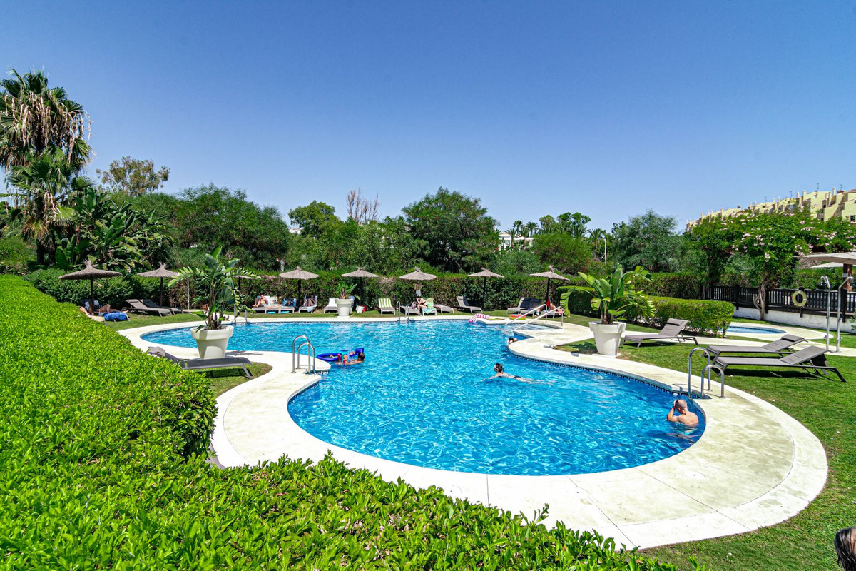 Golf Hills a gated complex with communal gardens, large swimming pool, kids´ pool, paddle tenis courts, childrens playground area, situated in Selwo in the hills to the northeast of Estepona.