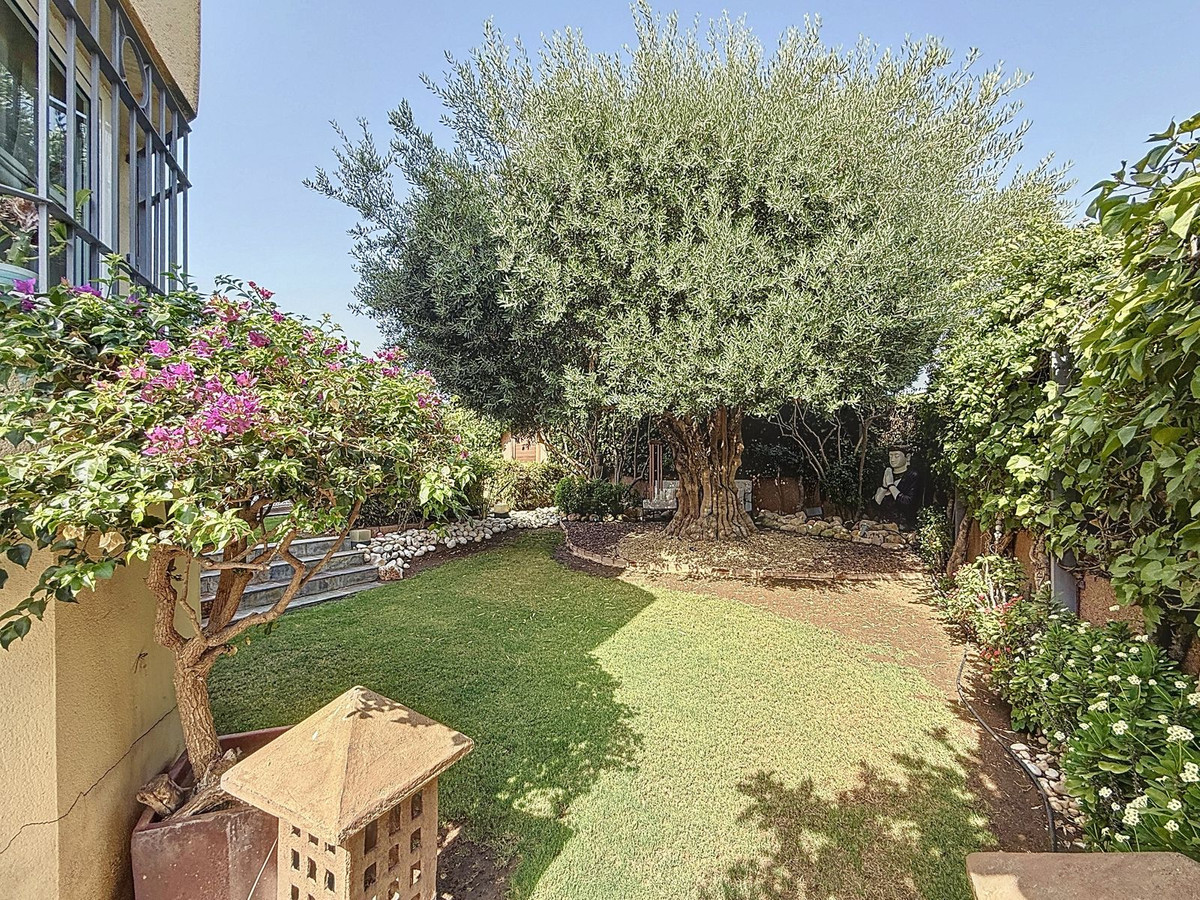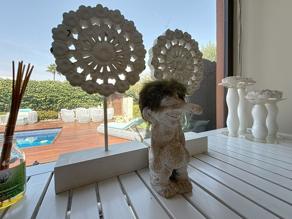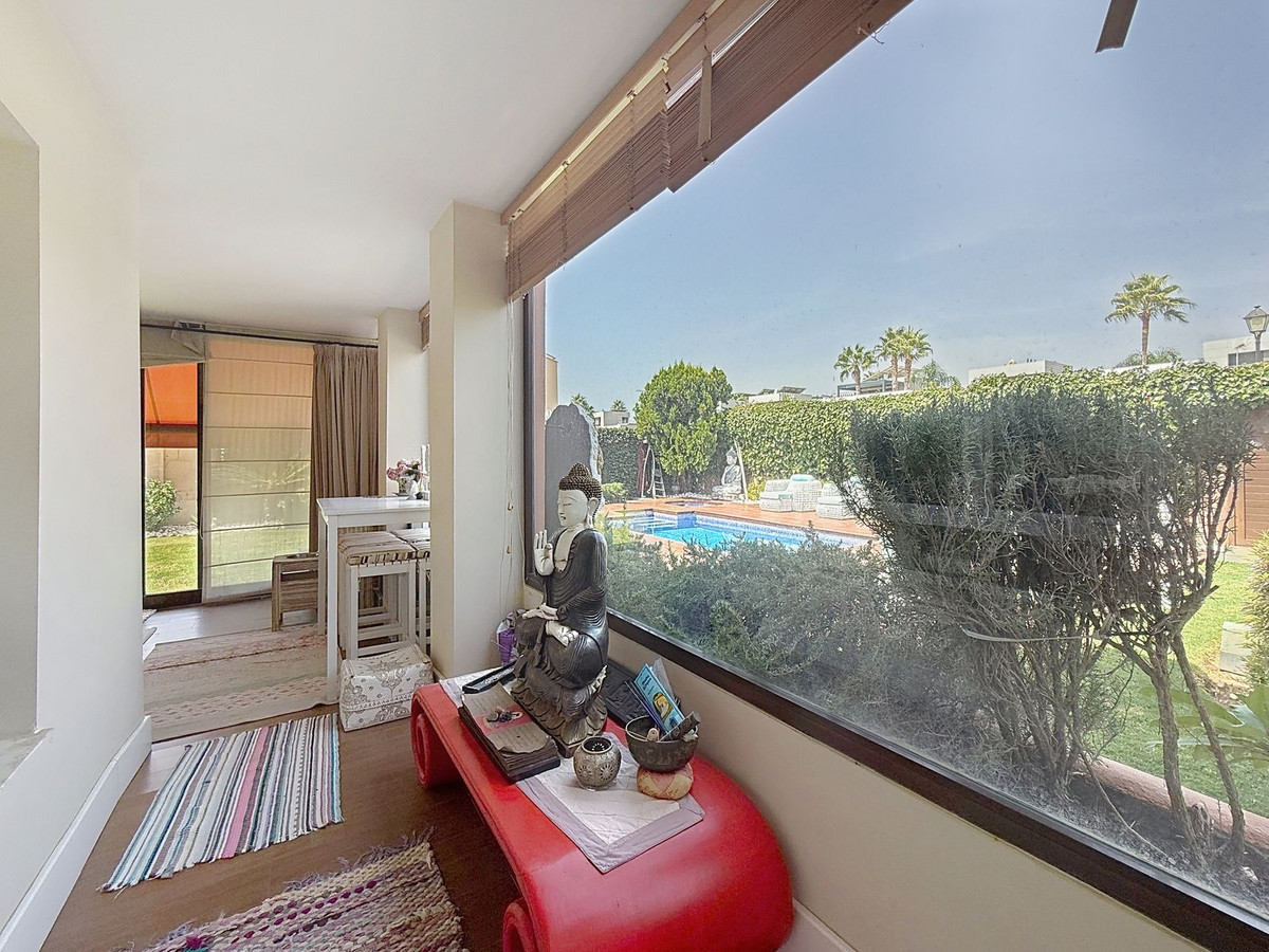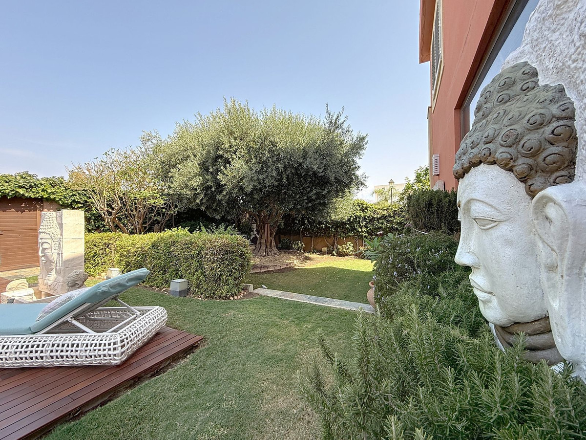 From the moment you step through the private gate, a sense of serenity surrounds you. The gardens are a world of their own: an ancient olive tree as guardian, Buddha accents creating a spiritual calm, shaded terraces and intimate lounge corners that invite pure relaxation. At the heart lies a 6x4 m pool with jacuzzi, embraced by natural greenery and the soothing shade of mature trees – a rare oasis in this privileged location.