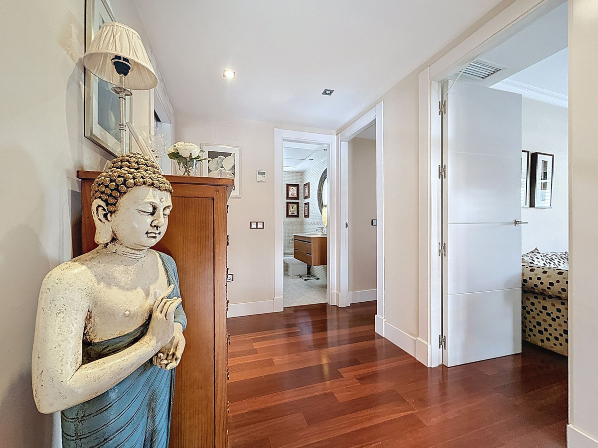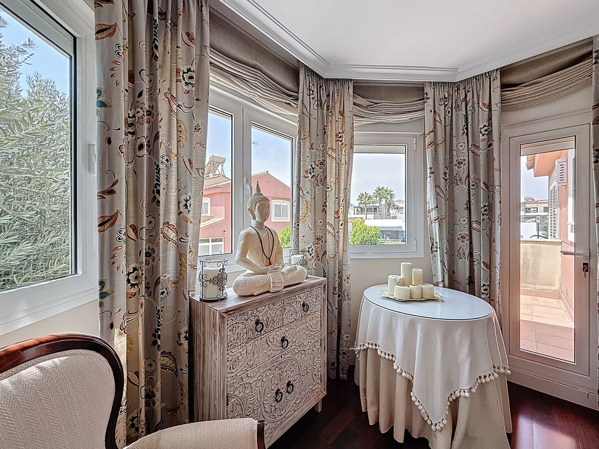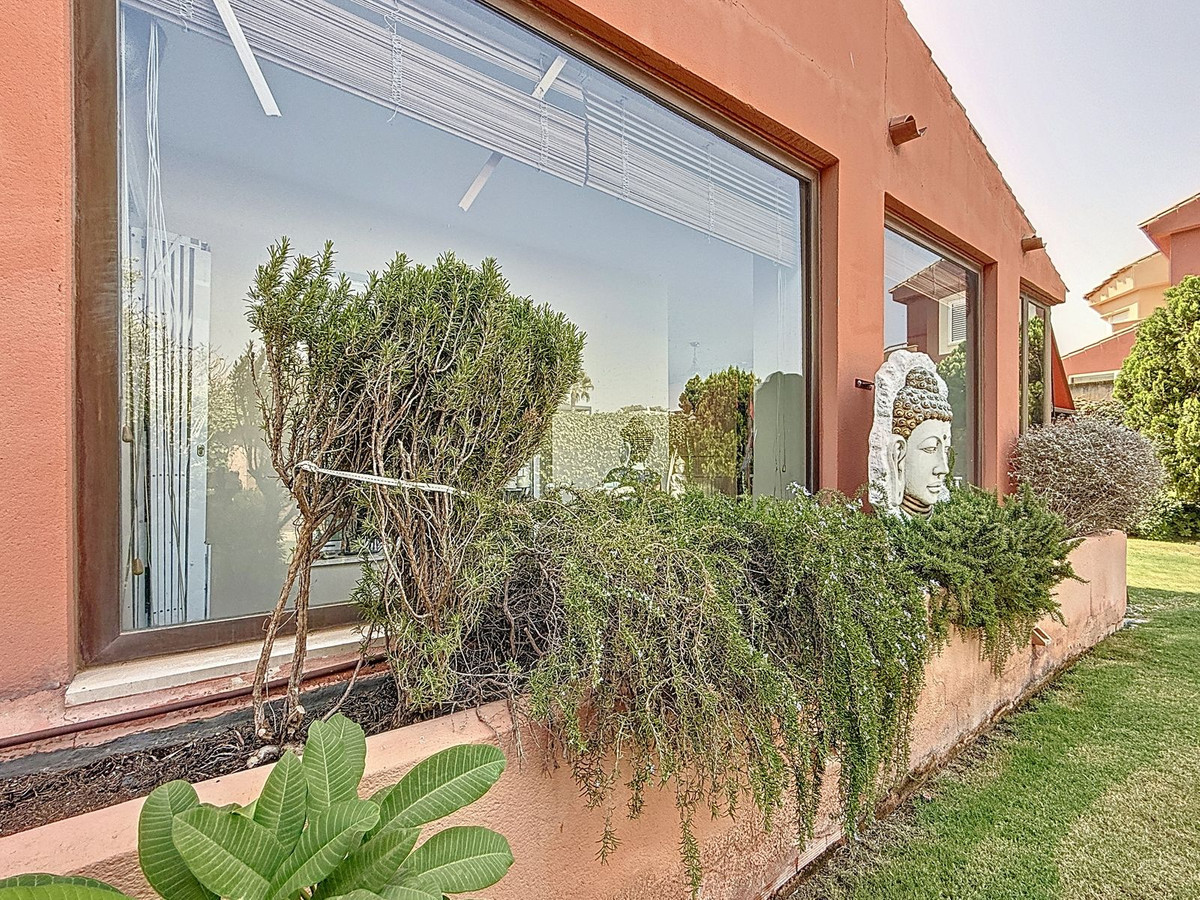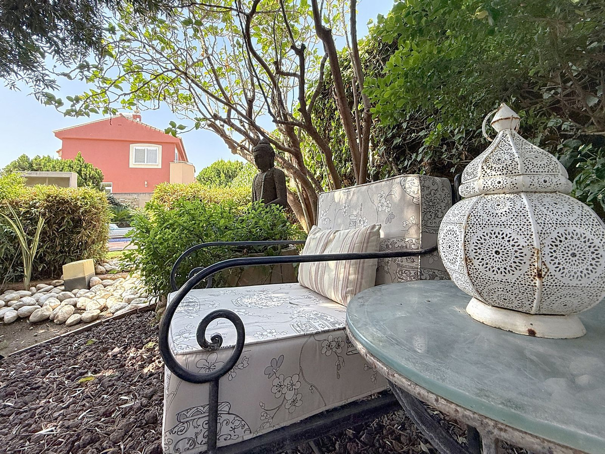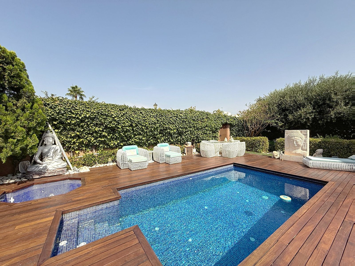 From the moment you step through the private gate, a sense of serenity surrounds you. The gardens are a world of their own: an ancient olive tree as guardian, Buddha accents creating a spiritual calm, shaded terraces and intimate lounge corners that invite pure relaxation. At the heart lies a 6x4 m pool with jacuzzi, embraced by natural greenery and the soothing shade of mature trees – a rare oasis in this privileged location.