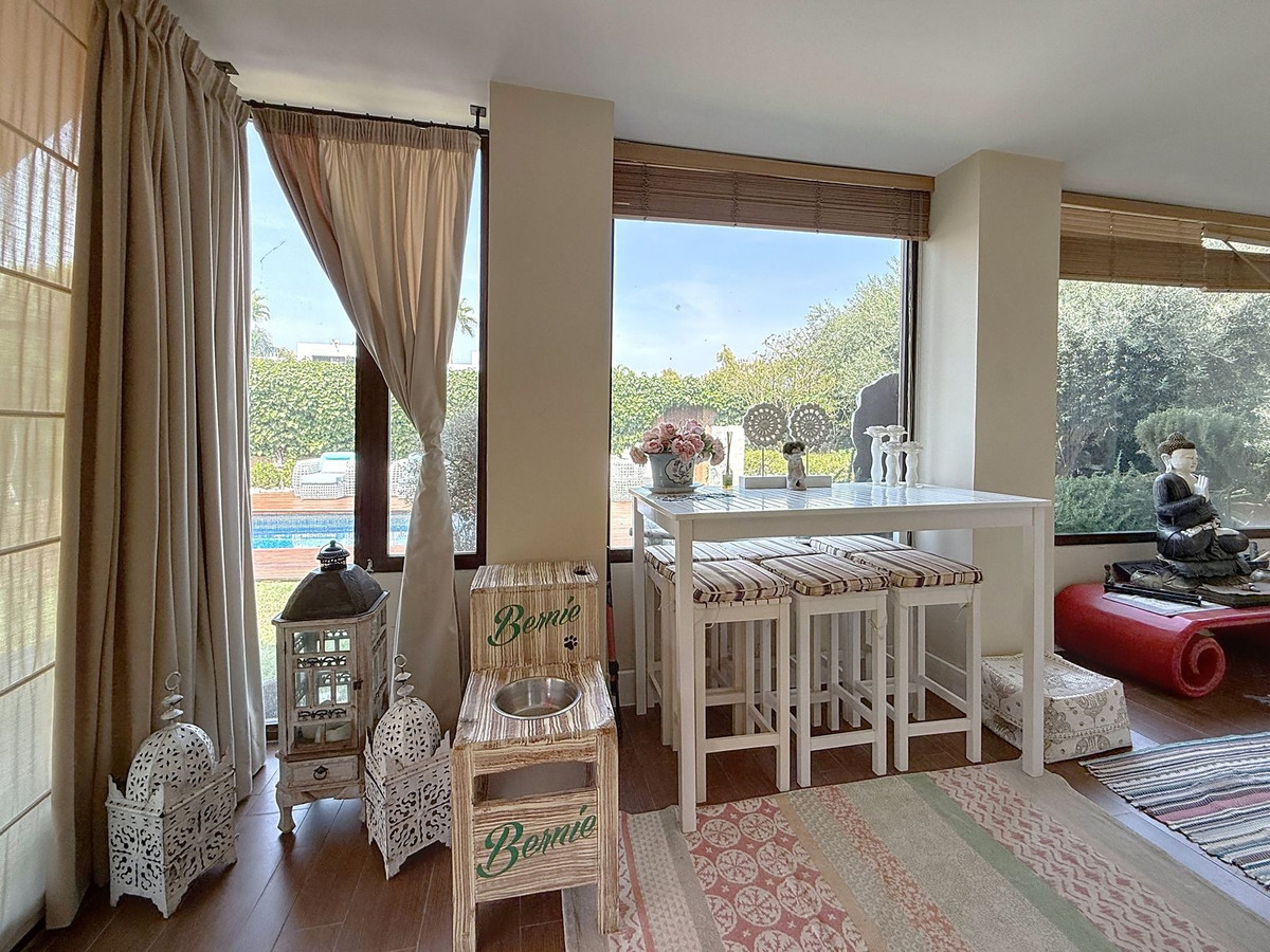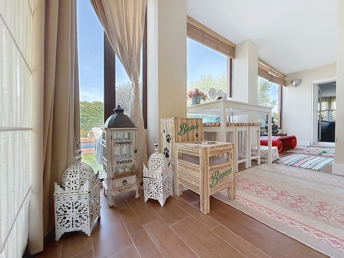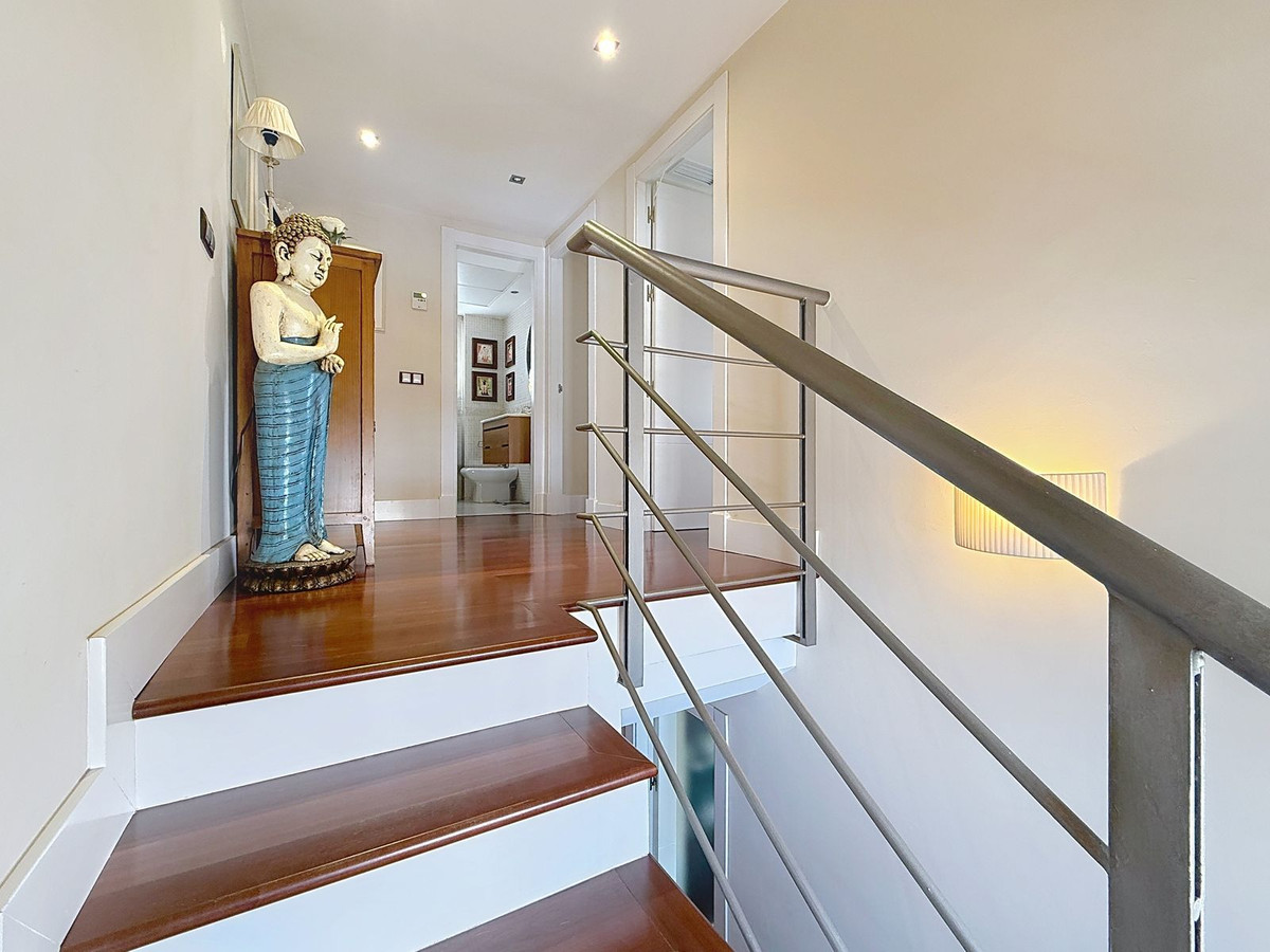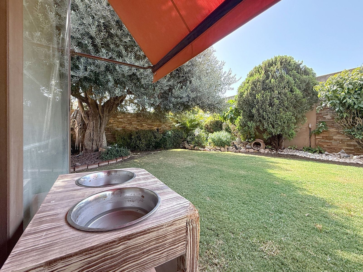 From the moment you step through the private gate, a sense of serenity surrounds you. The gardens are a world of their own: an ancient olive tree as guardian, Buddha accents creating a spiritual calm, shaded terraces and intimate lounge corners that invite pure relaxation. At the heart lies a 6x4 m pool with jacuzzi, embraced by natural greenery and the soothing shade of mature trees – a rare oasis in this privileged location.