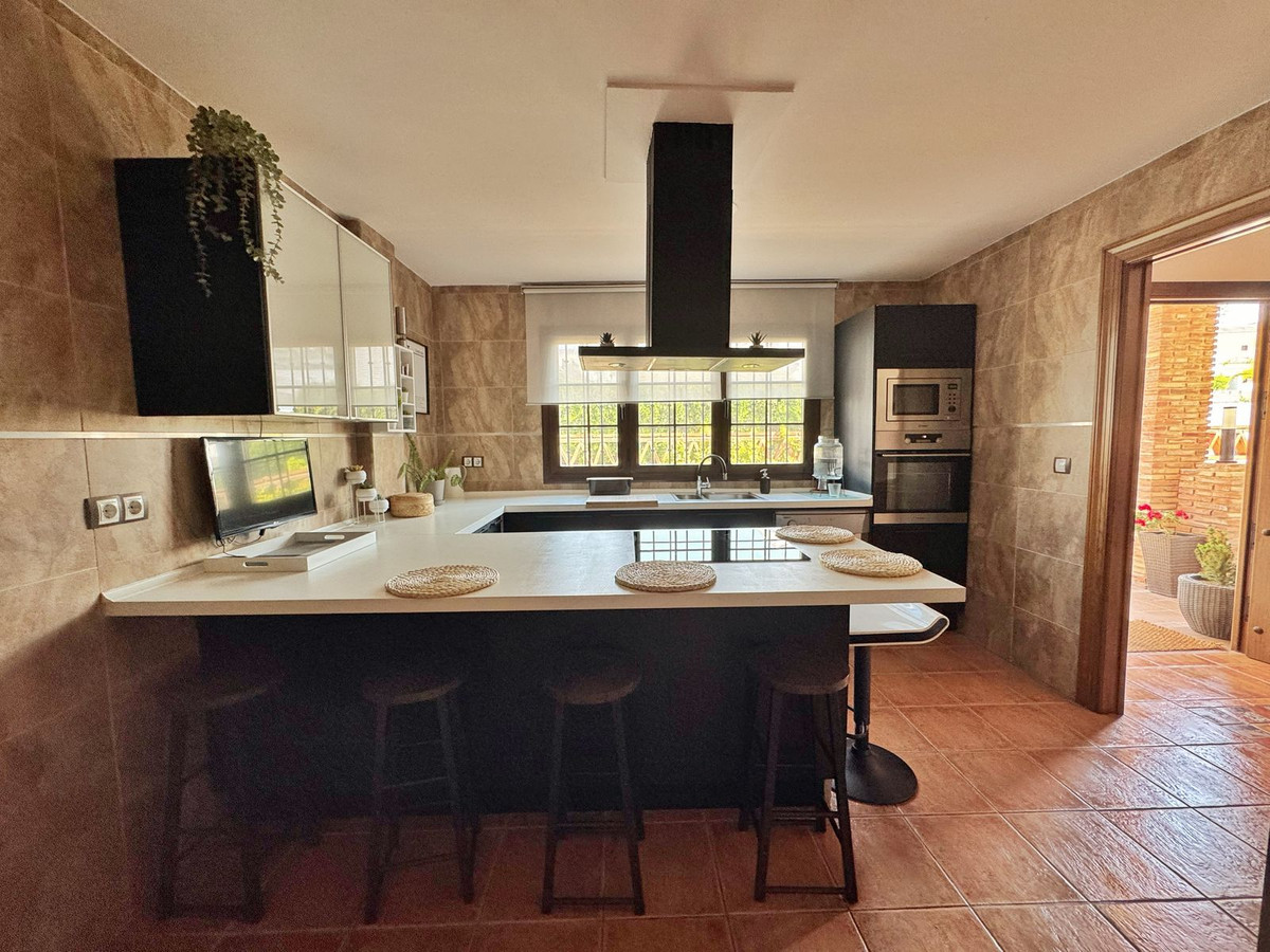 The villa features a private swimming pool, completely renovated with top-quality materials, perfect for enjoying outdoor living and the Costa del Sol climate. The exterior areas are thoughtfully designed to offer both sunny and shaded spaces all year round.