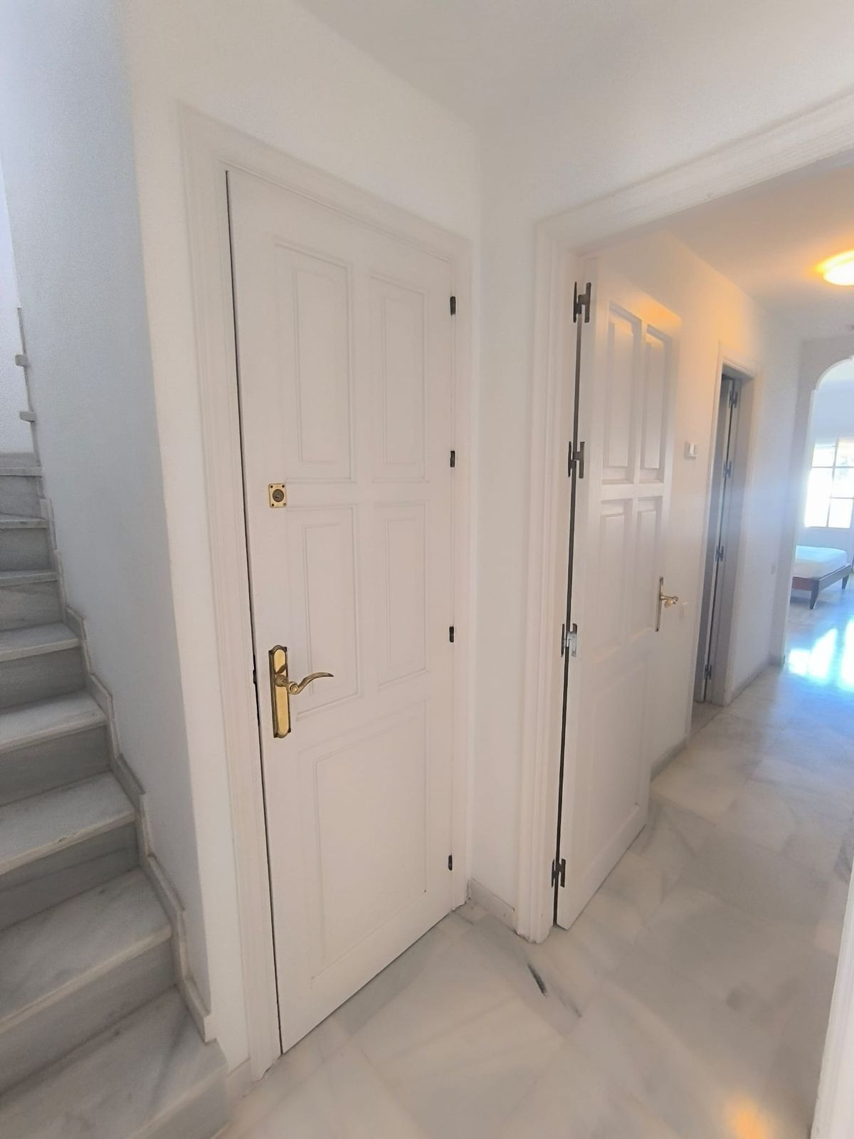 Spacious apartment in the El Presidente complex, Estepona, next to the beach and close to all amenities. The apartment features an entrance hall, a large living-dining room, a fully equipped kitchen, and 3 bedrooms with 2 bathrooms. Marble floors and built-in wardrobes. The development has 5 swimming pools, one of which is heated year-round, as well as paddle tennis and tennis courts. Several golf courses are nearby. There is a concierge at the entrance and 24-hour security.
