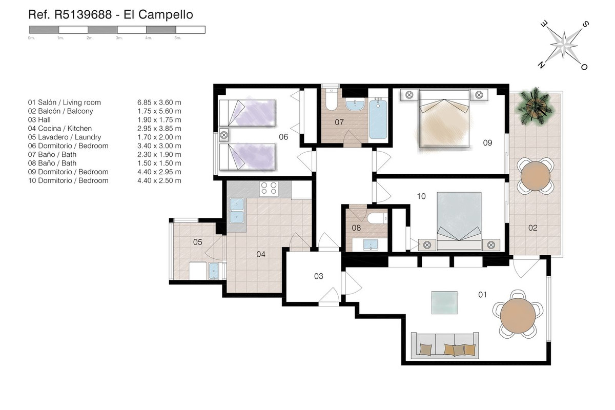 Its location is privileged: only 20 minutes from Alicante city, 3 minutes by car from the town center of El Campello, and very close to tram and bus stops. It also has easy access to the motorway and to all kinds of services, schools, and shops. Golf enthusiasts will find Bonalba Golf just 12 minutes away, while El Campello beach and La Almadraba beach are only 10 and 4 minutes on foot, respectively.