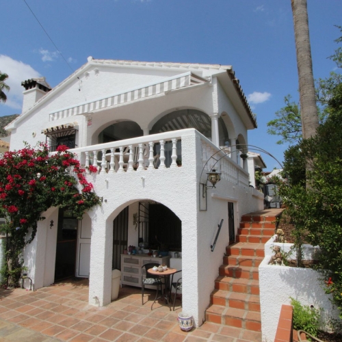 On the main floor, there are 5 well-sized bedrooms and 3 bathrooms, as well as an interior patio, a cozy living room, and a kitchen with access to the rear terrace that overlooks the tranquil orange groves. The upper floor boasts a large living room with terraces that provide breathtaking views, alongside two additional bedrooms.