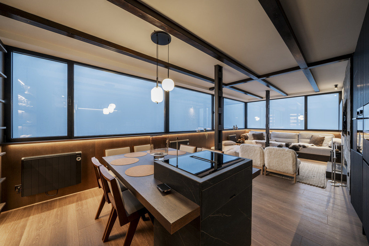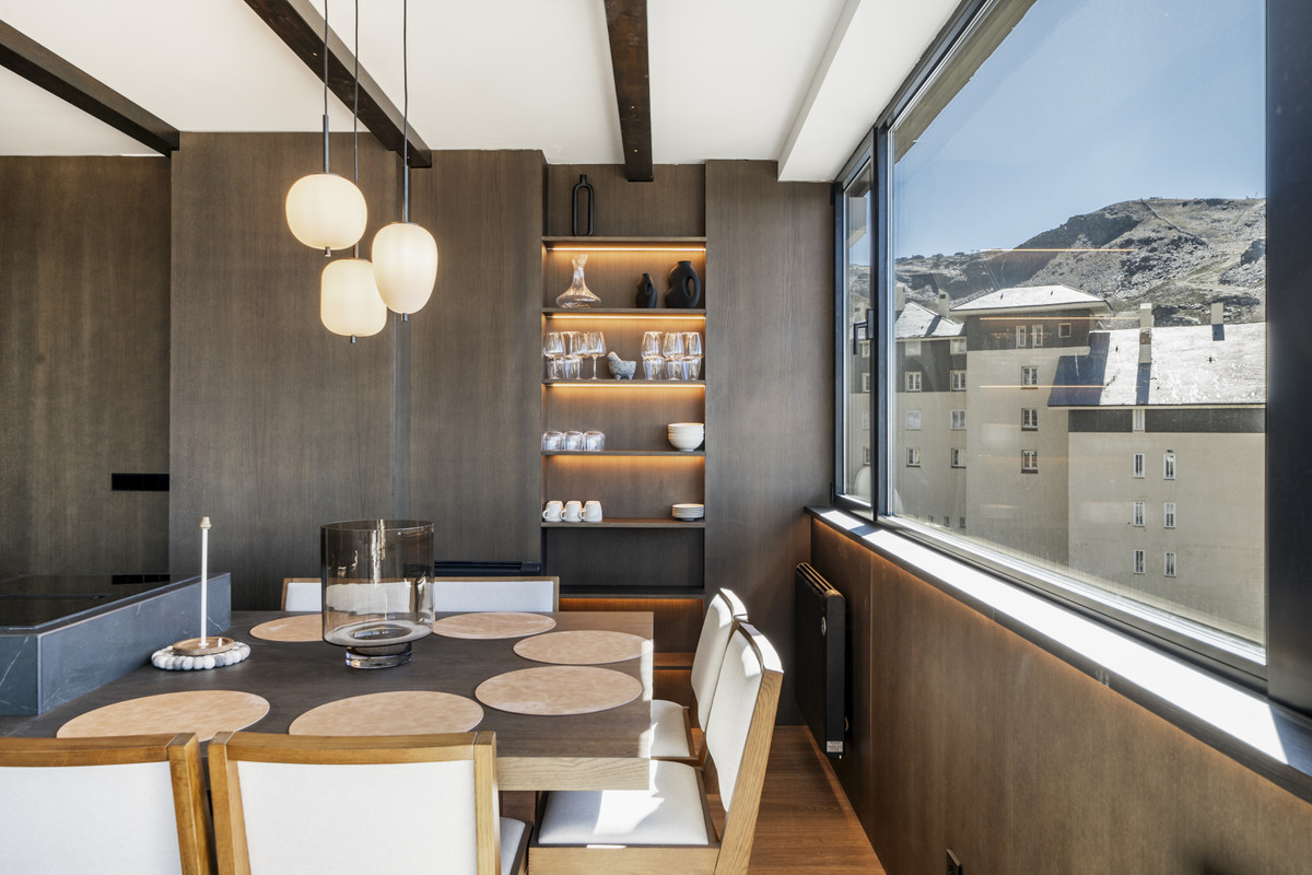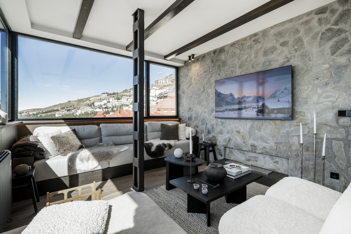 Positioned on the top floor of a modern building with elevator access, this high-specification apartment delivers a refined combination of comfort, quality, and alpine design. Natural stone, wood finishes, and unobstructed panoramic views of the Sierra Nevada establish a tranquil and practical retreat tailored for seasonal living.