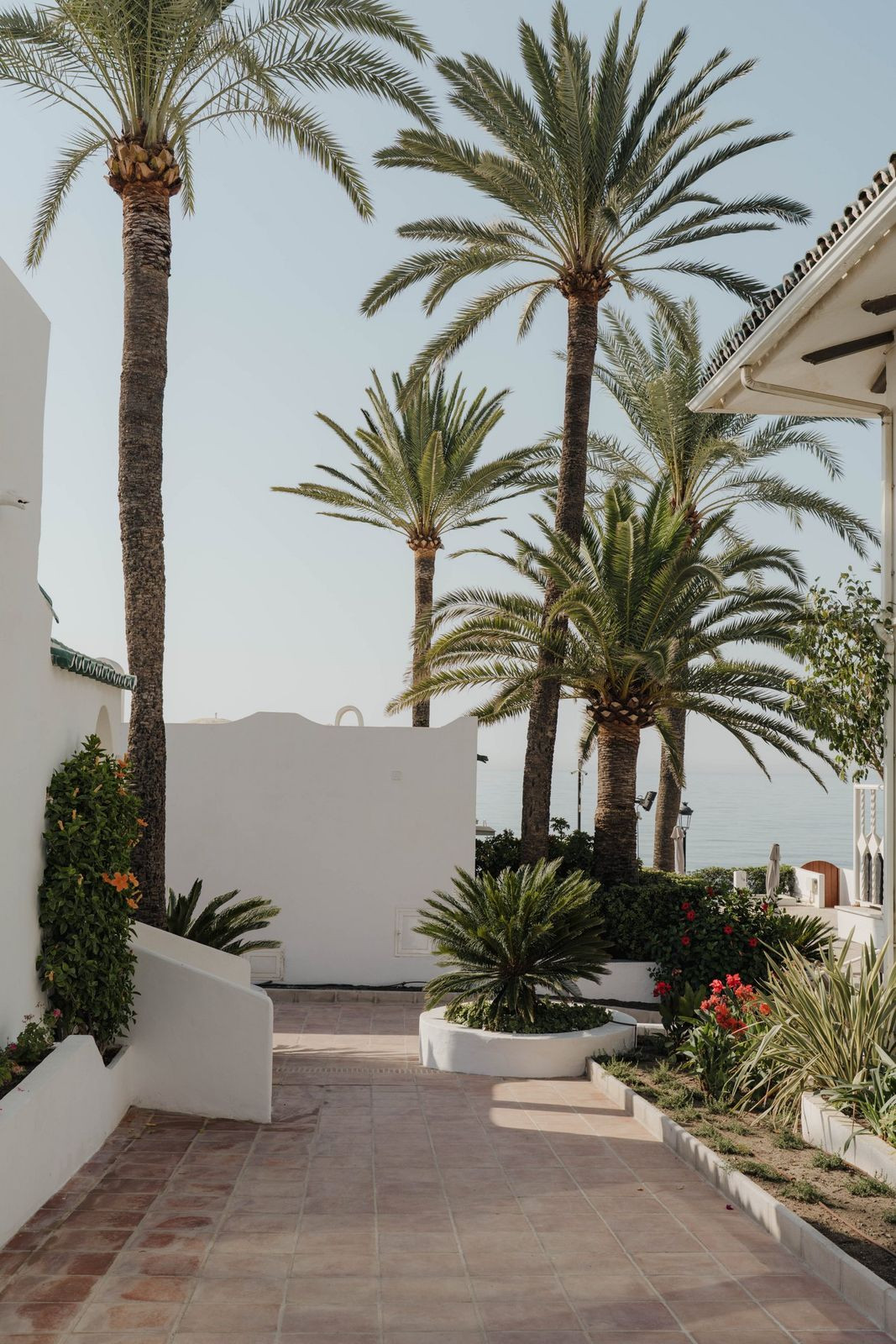 Upstairs you'll find two more bedroom suites, both with panoramic sea views. The principal suite offers a Mediterranean ambiance with en suite bathroom and a chic walk-in closet, while the second suite opens onto a spacious terrace with lounge and wet bar – the perfect setting to enjoy Marbella's sunsets. With direct access from the community to the beachfront promenade, you can stroll to PuenteRomano, Marbella Club, or even Puerto Banús. Fine dining, beach clubs, and world-classamenities are all within walking distance.