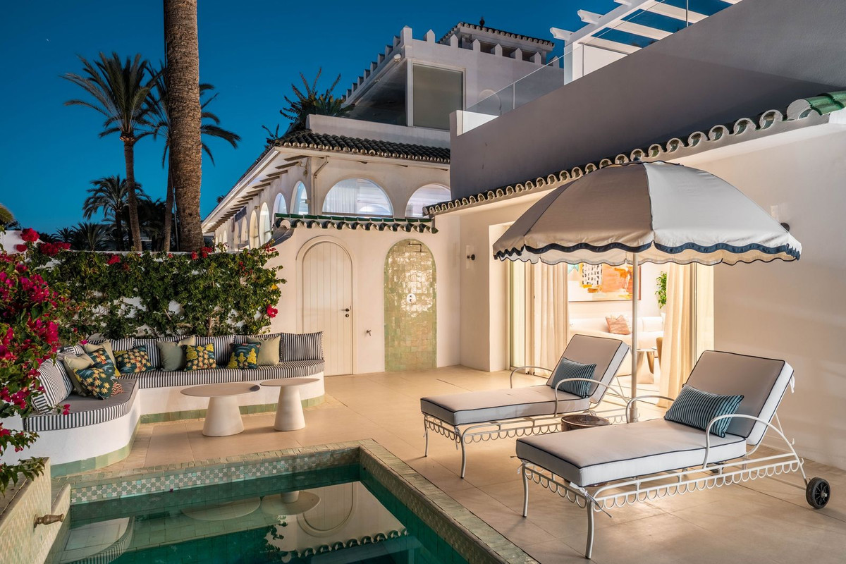 Discover this exceptional semi-detached home in the exclusive Oasis Club, one of the most desirable beachfront communities on Marbella's Golden Mile. Recently renovated with Marbella Club–inspired design, the property blends timeless elegance with modern comfort.