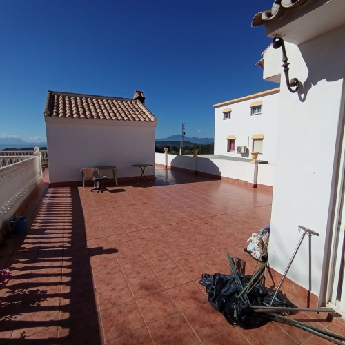 The main residence is arranged over one floor and presented in excellent condition, having been refurbished by the current owner. It features two spacious double bedrooms, a family bathroom, and a bright open-plan living room with fireplace, air conditioning, and a modern kitchen with central island. A large, covered terrace at the front of the house boasts stunning mountain views, the perfect spot for relaxing or entertaining.