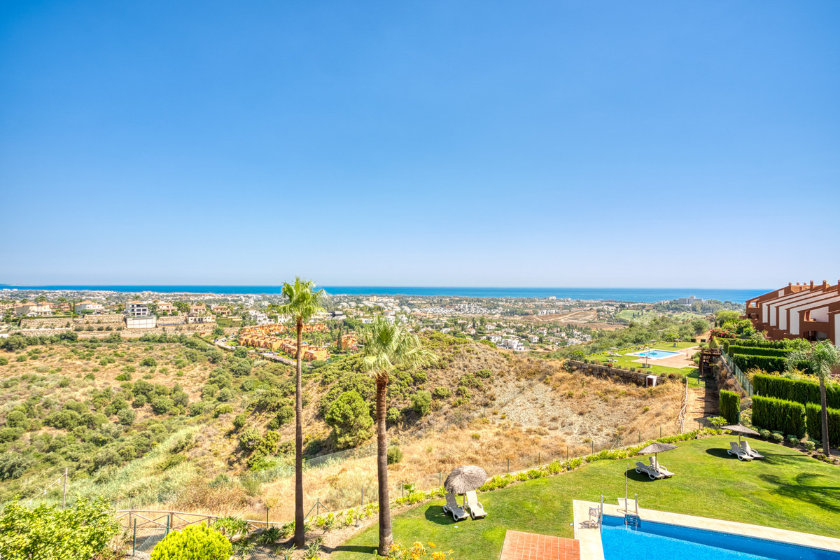 Beautiful townhouse in the prestigious Los Jaralillos community, located in the sought-after El Paraíso area of Benahavís. Within walking distance to the beach, golf courses, shops, restaurants, cafés, and international schools. Spread over four floors, this charming home features private gardens and offers stunning sea views from several terraces. The main floor comprises a fully equipped kitchen, spacious living-dining area, laundry area, guest toilet, and a large terrace with sea views that provides direct access to the private garden. The first floor offers two bedrooms, both with access to a terrace with sea views. The master bedroom is en suite, and this floor also includes an additional bathroom and a small sitting area. The upper floor is dedicated to a solarium with a generous terrace, perfect for sunbathing or enjoying the views. The basement houses the machine room and a utility room. The property offers the perfect combination of comfort and location, within a gated community, with beautifully maintained gardens and a large communal swimming pool. Additional features include wooden flooring, air conditioning, and a parking space. This townhouse combines comfort, privacy, and a privileged location.