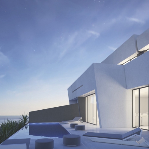 The main floor of the villa impresses with a spacious living room and an open-plan kitchen, where large windows let in natural light and frame the magnificent sea views. From here, you also have direct access to one of several terraces, providing an idyllic setting for relaxation or dining under the stars.