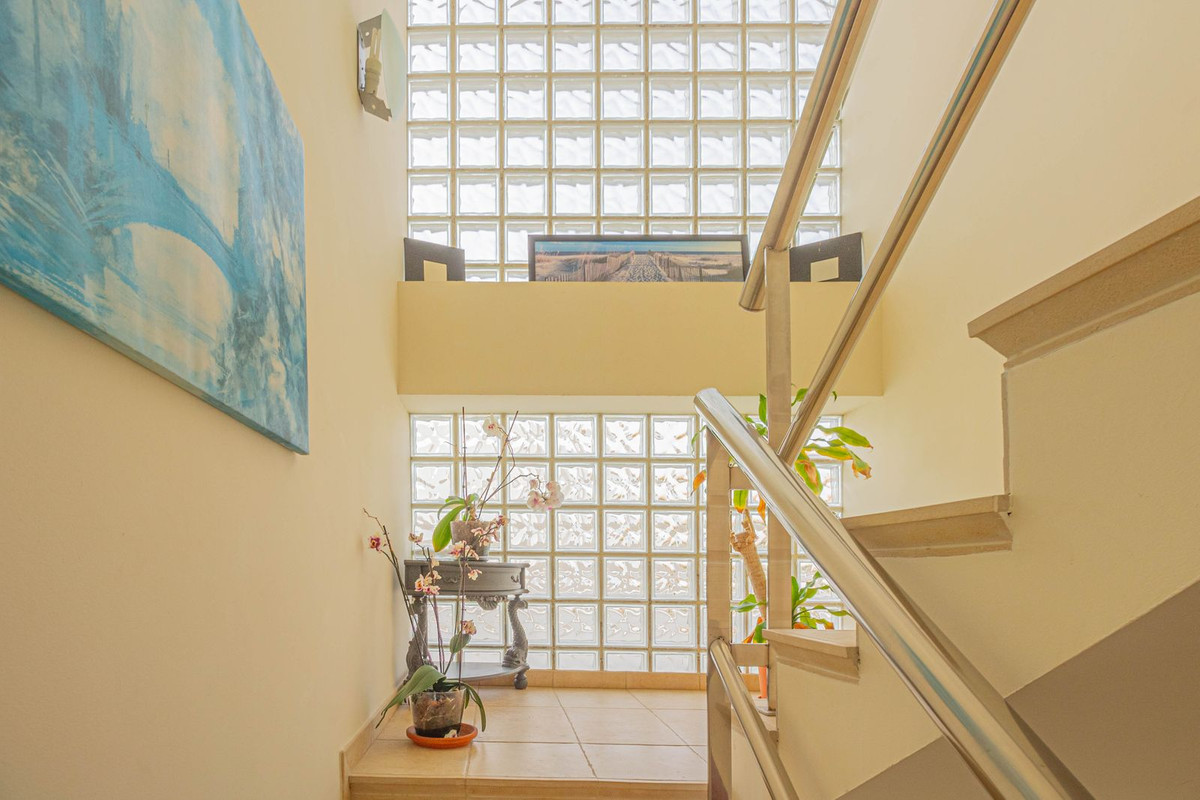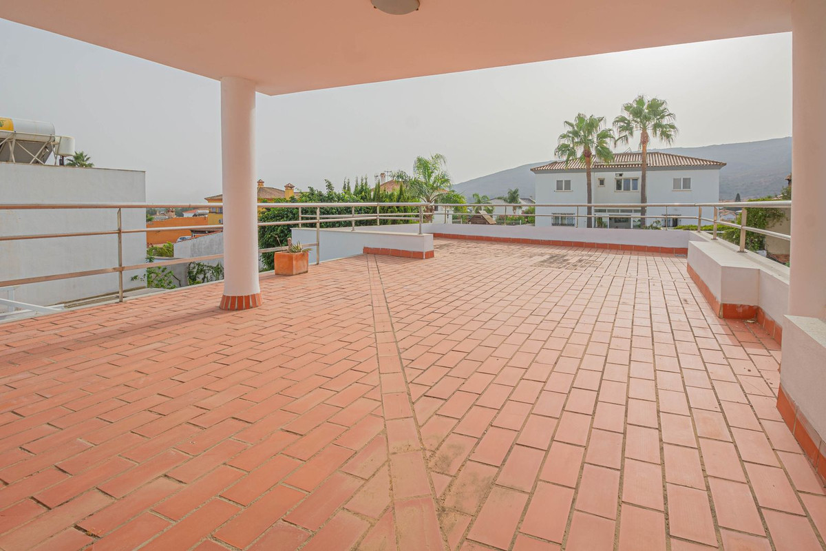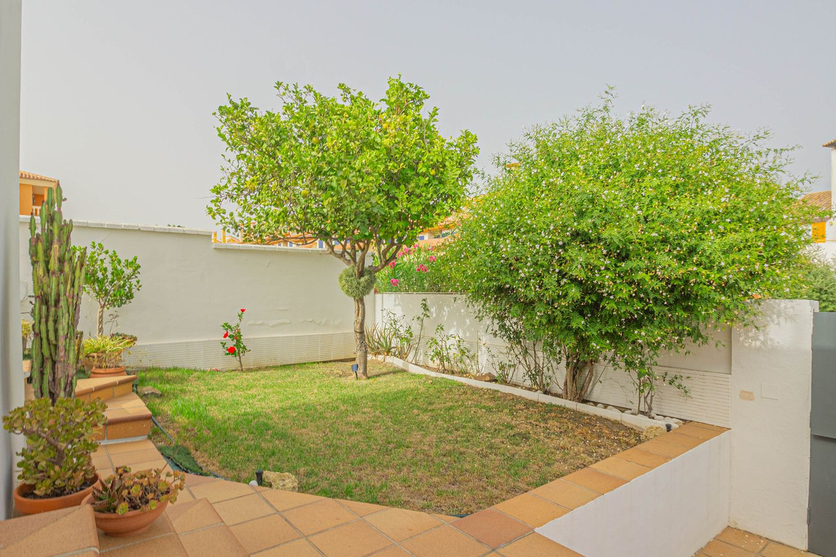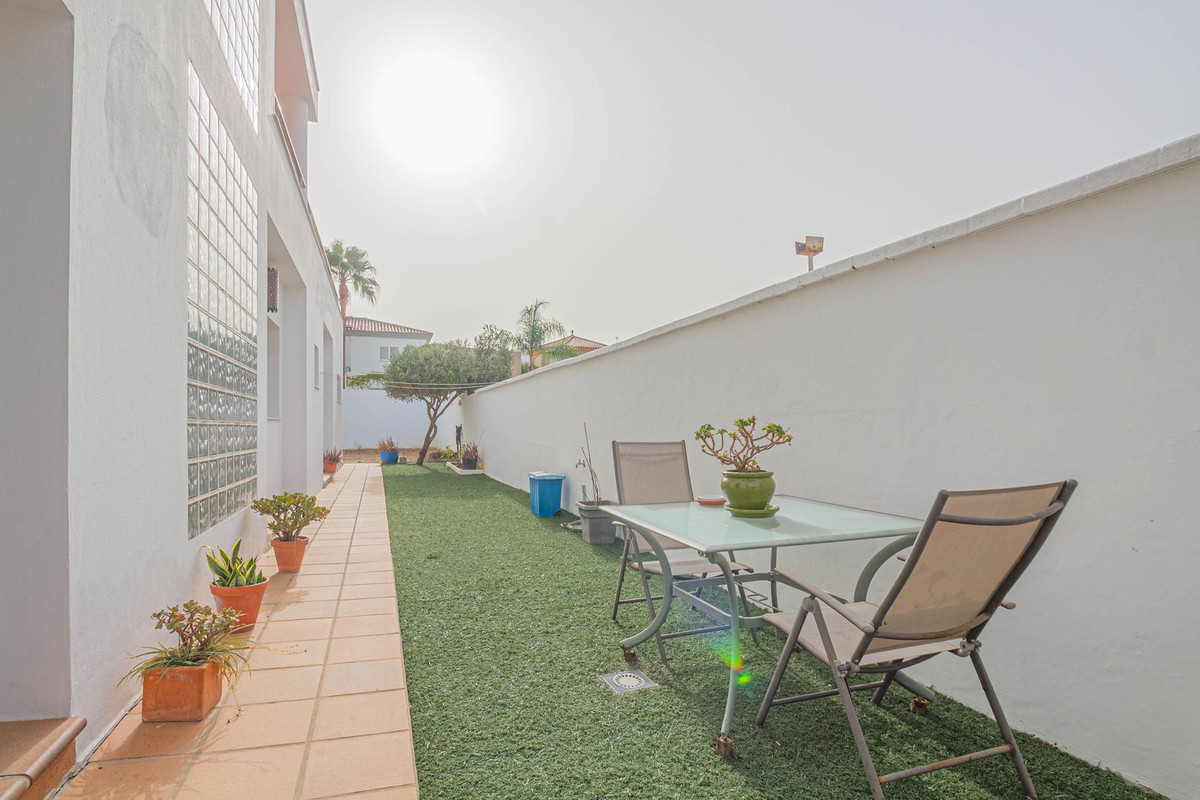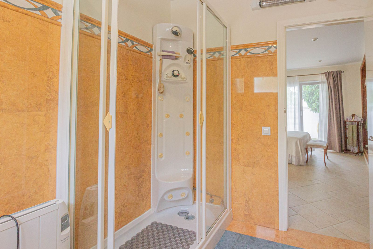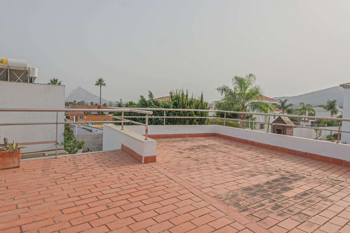 Outside, the property offers garden areas, a former organic orchard, and a container-style storage room ideal for additional storage. It also features a large solarium with stunning views of the Rock of Gibraltar, as well as a private garage with enough space for two cars and ample storage room.