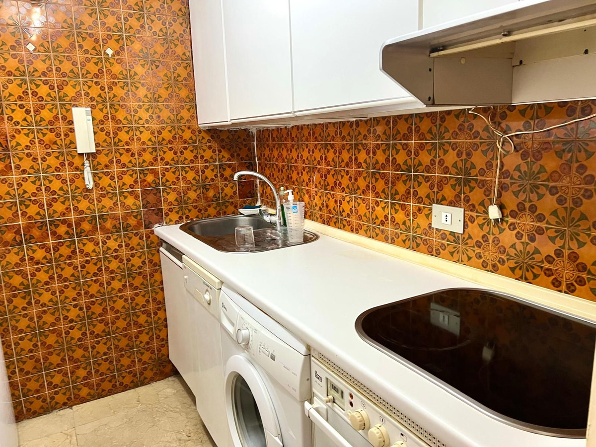 The living room opens onto a terrace with breathtaking frontal sea views, ideal for enjoying Mediterranean sunrises and the ocean breeze all year round. The kitchen is semi-open and fully equipped.