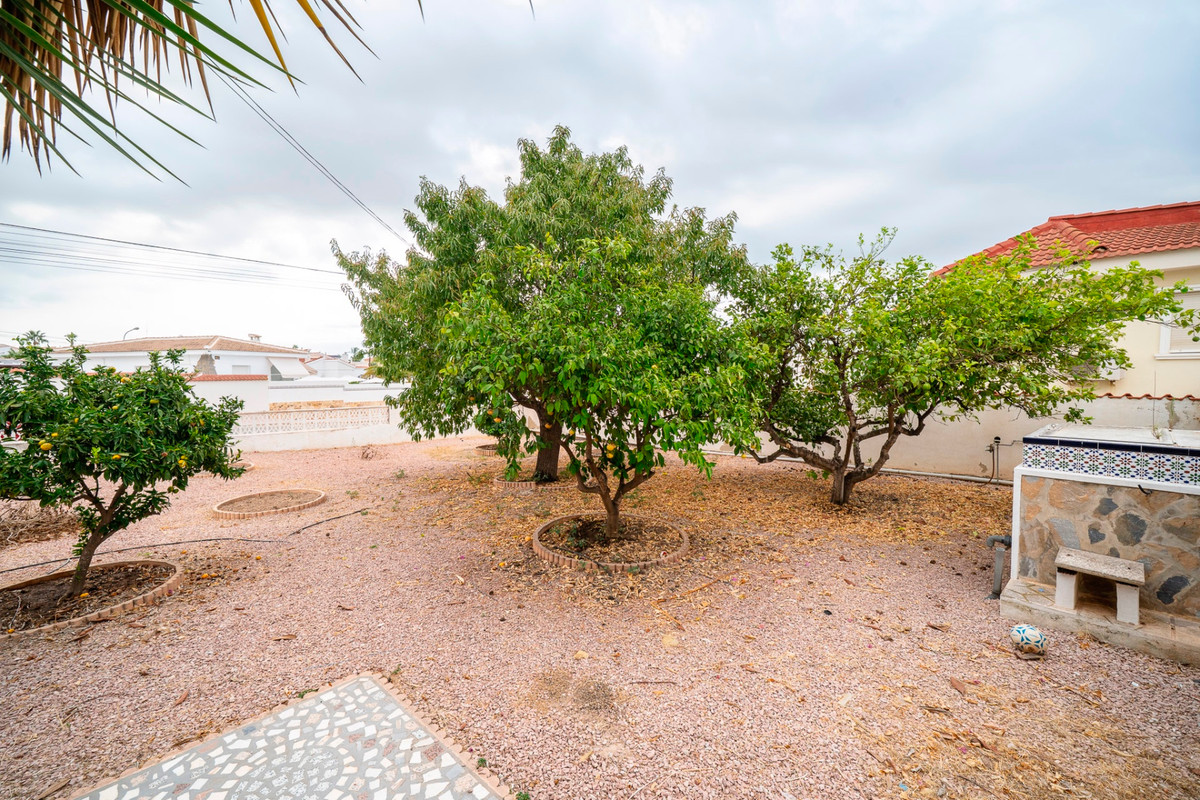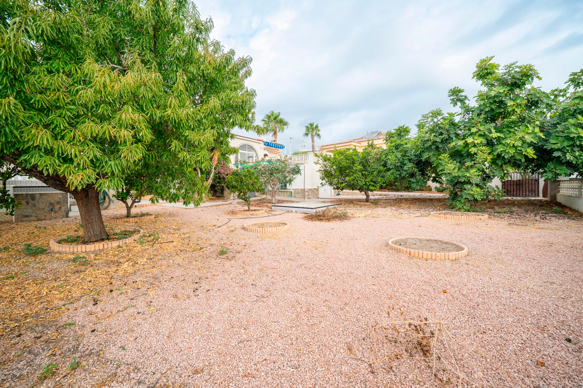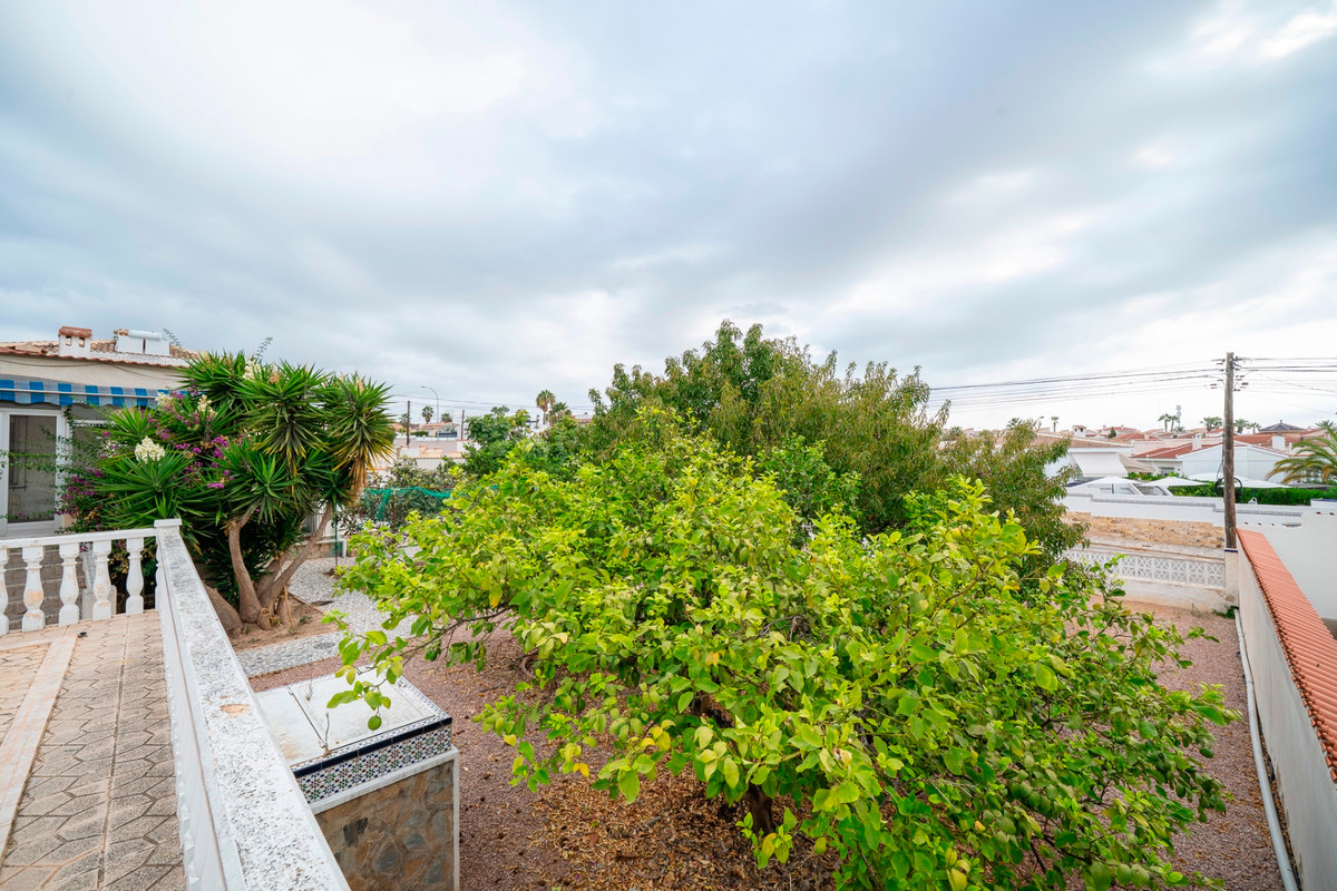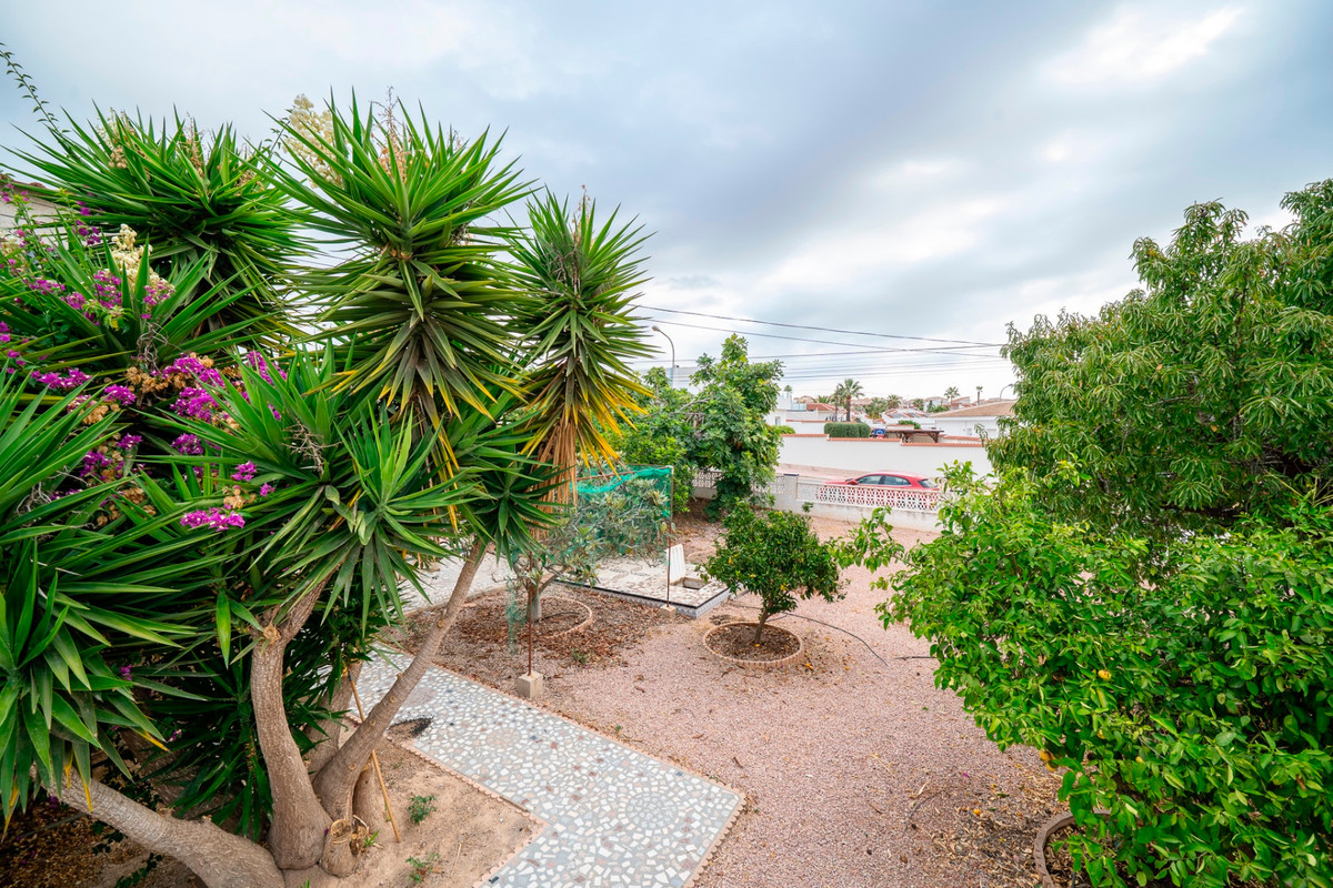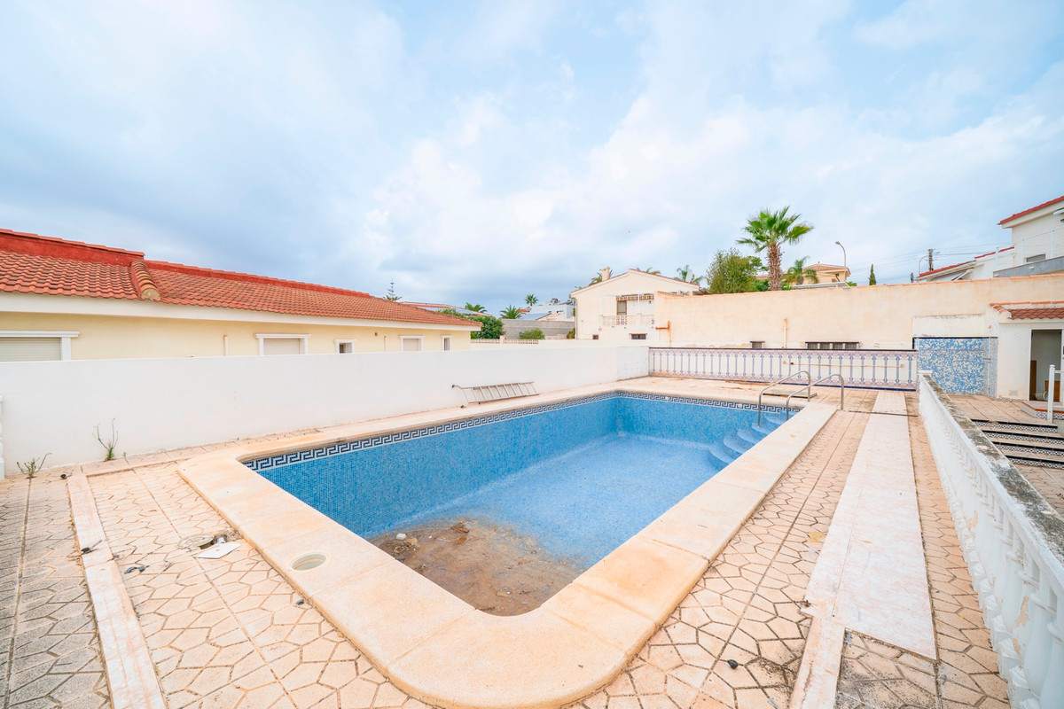 Detached villa built in 1983 with a living area of 92 m², set on a generous plot of 900 m². The property offers two bedrooms and one bathroom, a living room with fireplace, an independent kitchen, and a glazed terrace facing south, which leads via stairs down to the pool area. From the north façade, there is an entrance to a hallway that connects directly to the kitchen.