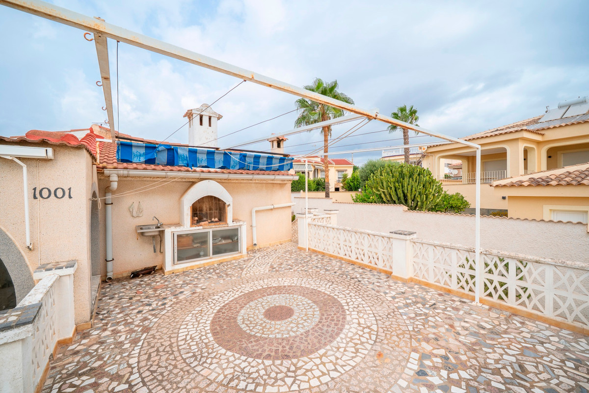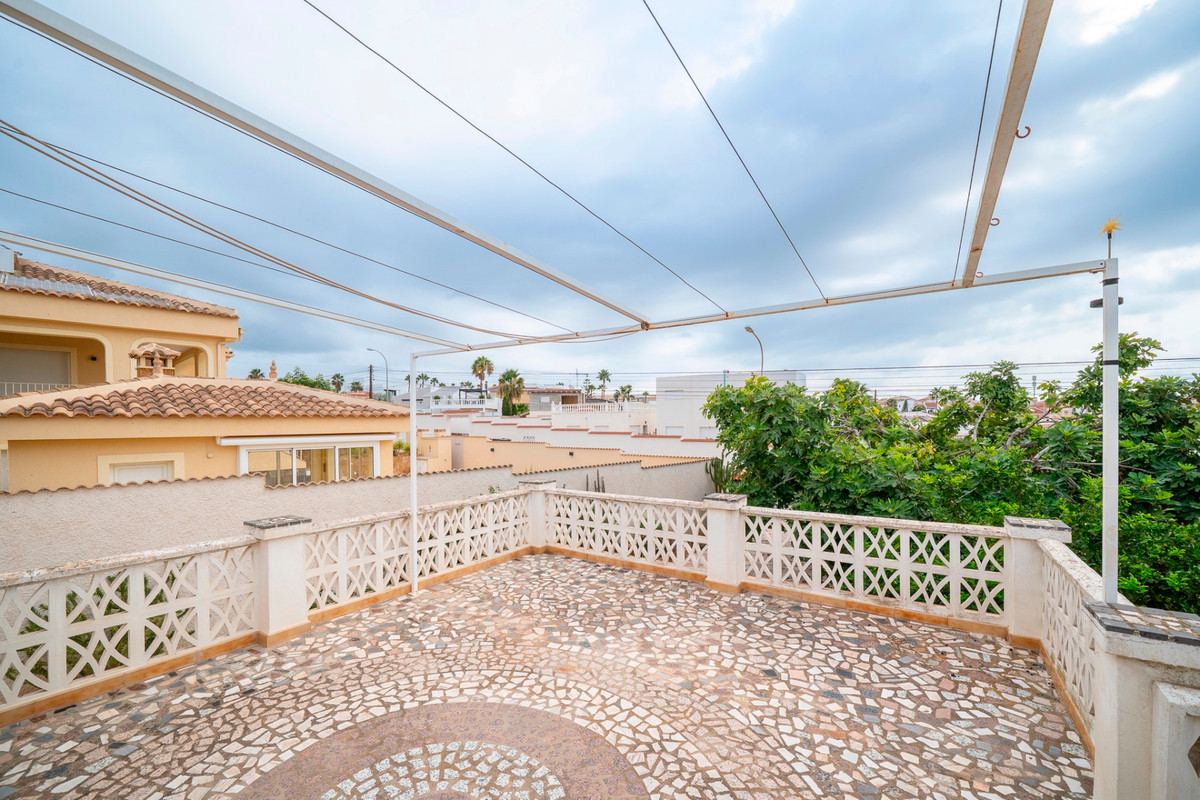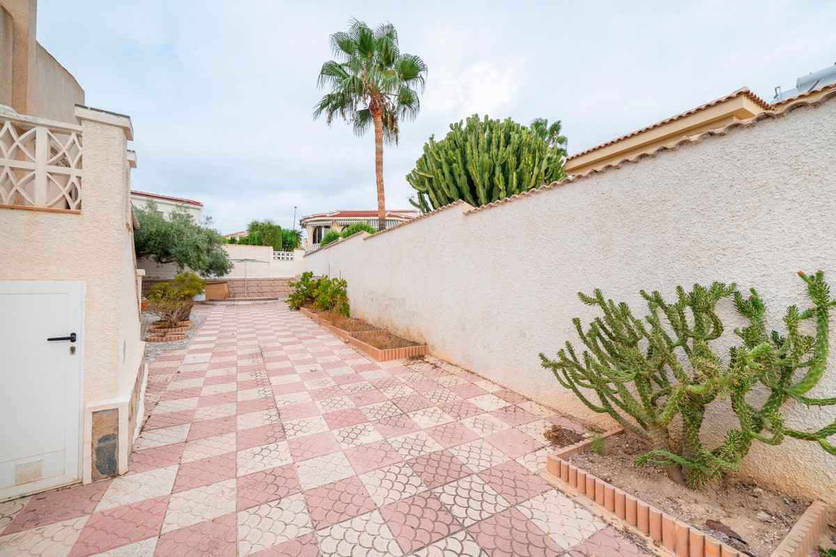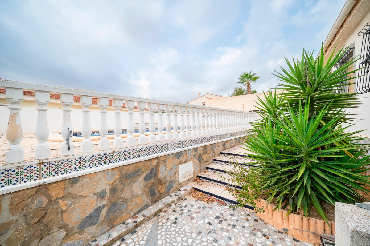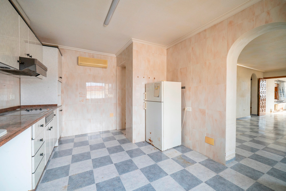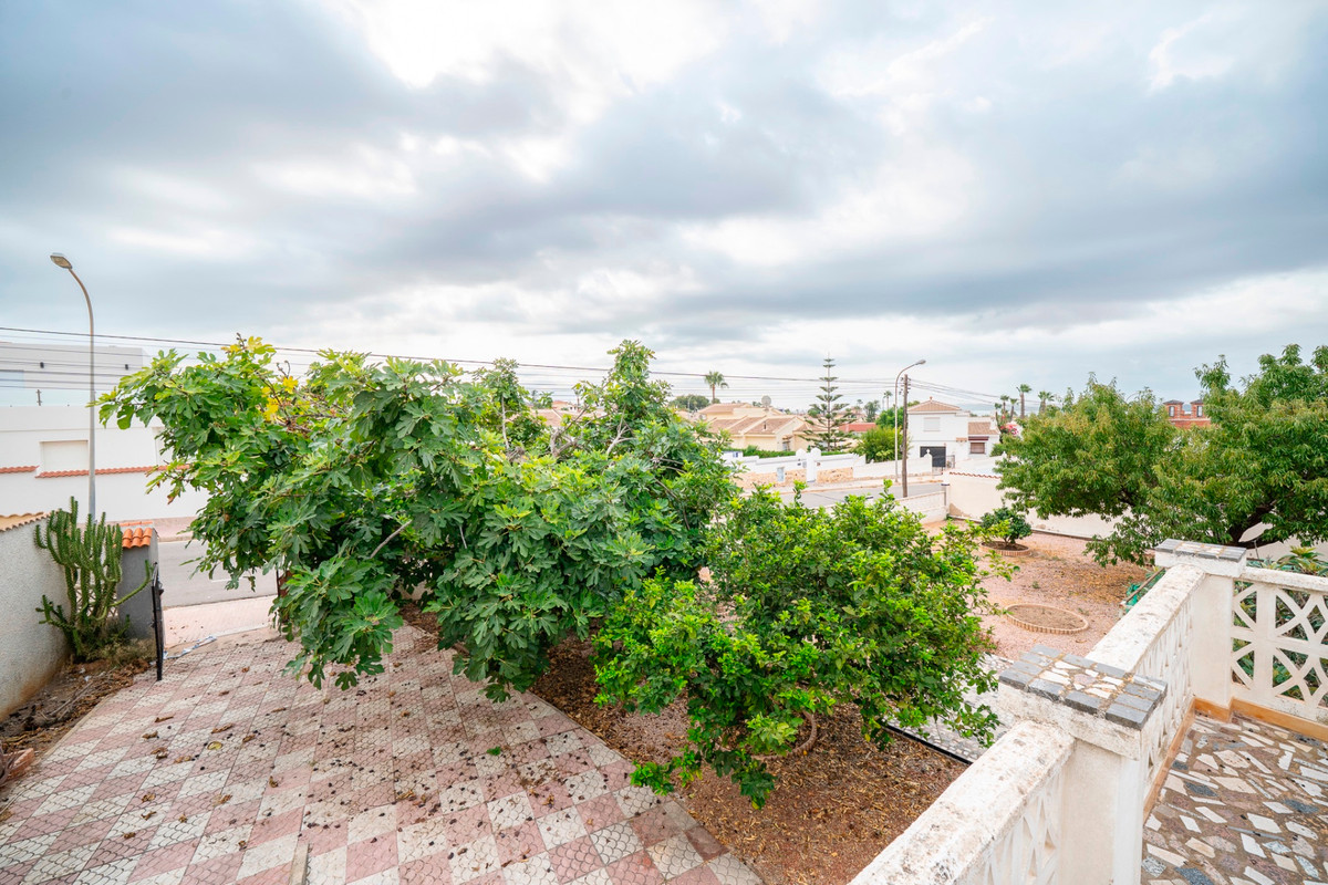 Detached villa built in 1983 with a living area of 92 m², set on a generous plot of 900 m². The property offers two bedrooms and one bathroom, a living room with fireplace, an independent kitchen, and a glazed terrace facing south, which leads via stairs down to the pool area. From the north façade, there is an entrance to a hallway that connects directly to the kitchen.