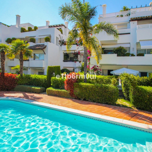 Beautiful apartment in a gated community Playa Esmeralda, located on beachfront, in Golden Mile, Marbella. The apartment has 2 bedrooms, 2 bathrooms (one in-suite), living room with access to the spacious terrace with amazing view to the sea, beach and gardens. Kitchen is equipped with all appliances. In the urbanization there is two swimming pools, beautiful gardens, gym, direct access to the beach and 24 hours security sistem with camaras.