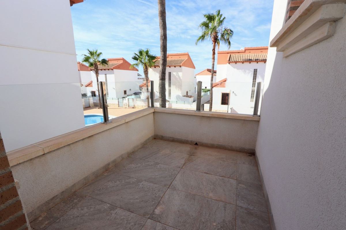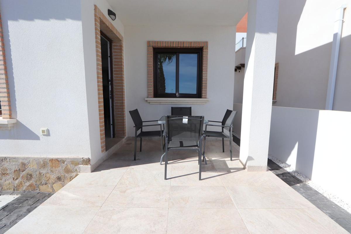 This property features 3 bedrooms, 2 bathrooms, a spacious living/dining area, and a fully fitted kitchen. It also boasts a private sunny terrace, a garden, and off-road parking. For your comfort, the villa includes air conditioning throughout and electric blinds, and it is being sold furnished. One of the great benefits of this complex is the communal swimming pool, which can be accessed directly from the back of the property.
