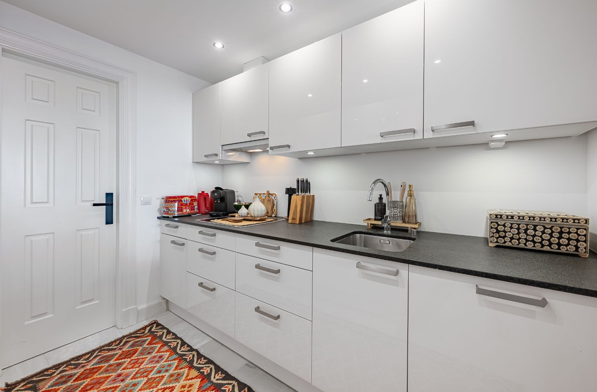 The residence features four spacious bedrooms, including a master suite with a private bathroom, plus an additional full bathroom and a guest toilet—ensuring comfort and privacy for family and guests. Built-in wardrobes maximise storage, while marble floors, central heating, and ceiling heating add a touch of refined luxury throughout. The property is offered partly furnished, with the option to customise further.