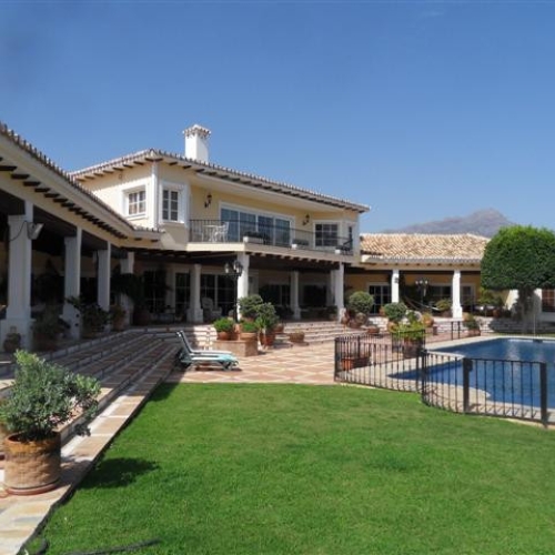 Nestled in the prestigious La Quinta area of Benahavis, this stunning 303-square-meter villa (386 sqm including terraces) sits on an expansive 765-square-meter plot, offering an unparalleled blend of luxury living and natural beauty. With its coveted south-facing orientation, the property is bathed in natural light throughout the day while providing breathtaking panoramic views of the sea, golf course, and surrounding mountains.