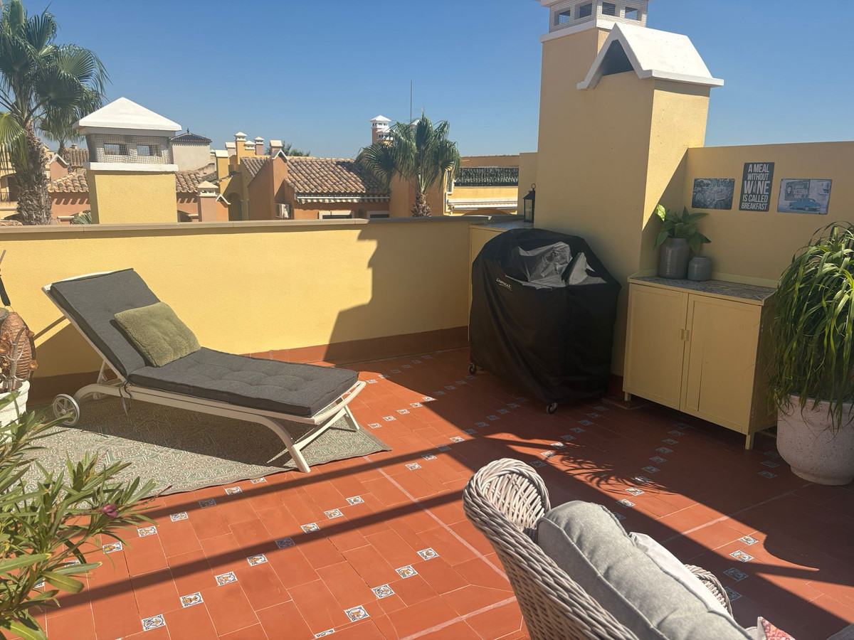 For sale: This bright, top-floor apartment offers 70 m2 of comfortable living space in the desirable Algorfa, La Finca Golf area. The home features two spacious bedrooms with built in wardrobes, and two bathrooms, making it ideal for couples or small families. Enjoy the light-filled, south-facing living area with a partially furnished interior, ready for you to add your personal touch.