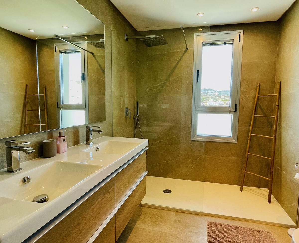 Built by a renowned British developer, the property is located in the exclusive, gated community of NATURA – a small and very private complex with only 40 residential units. The communal facilities are immaculately maintained and offer spacious garden areas, a large swimming pool and a separate children's pool. Nestled in the rolling hills of La Cala de Mijas and with direct access to the golf course landscape, you can enjoy absolute peace, security and Mediterranean flair here.