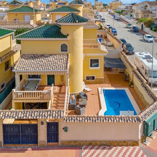 We are delighted to present to you this Fabulous Detached Villa in Algorfa! Set in an amazing area, walking distance to a commercial area, this property offers everything you need for an exceptional lifestyle in Spain. The property is accessed through an automated gate for parking the car on the plot. Right in front of the house there is a large swimming pool to enjoy the warm weather throughout the year. As you enter the main door, the large living space is flooded with lot of natural light. On the left side you have the open kitchen area fully equipped and high-quality finishes, perfect to entertain the guests. In the same area you have the utility room with the washing machine, boiler, and the dryer. On the same level, there is a toilet as well. As you go on the 1st floor you access the main bedroom and the guest bedroom, both with good size and en suite bathrooms. The same floor has a large balcony with views over the pool area.