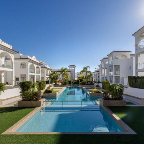 The residential complex, consisting of just 12 homes, offers a peaceful and secure environment with a communal pool, landscaped areas, and a parking space. It's conveniently surrounded by supermarkets, leisure zones, and close to the Consum shopping area in Ciudad Quesada.