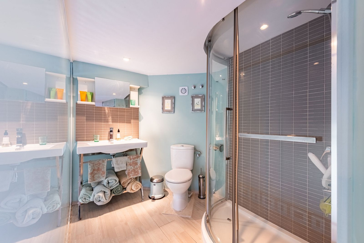 • Garden Level: A modern, self-contained apartment with bedroom, bathroom, and kitchen, alongside the large swimming pool, poolside bar, and landscaped grounds.