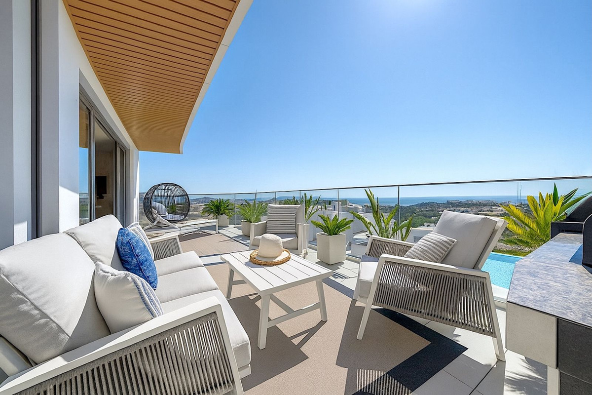 It has hot/cold air conditioning controlled by the best Air Zone home automation control system, underfloor heating throughout the interior area, LED lighting, designer kitchen with NEFF appliances, dressing areas in the bedrooms and large porcelain floors.