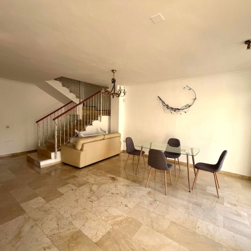Seize this fantastic renovation opportunity with endless potential in a spacious 5-bedroom, 3-bathroom townhouse, just a 10-minute drive from Estepona. Nestled in a peaceful gated community with a swimming pool, lush gardens, and a tennis court, this south-facing property offers breathtaking sea and mountain views, making it the perfect canvas to create your dream coastal home.