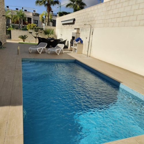 Top floor bungalow with private terrace for saleDiscover this charming recently renovated property, ideal to enjoy the Mediterranean lifestyle with all comforts.The bungalow offers around 60 m² distributed into two bedrooms (one with a built-in wardrobe), a modern bathroom with walk-in shower, an open kitchen and a bright living room. From the balcony, stairs lead up to the spectacular private terrace, the same size as the property itself.This spacious outdoor area includes a storage room, built-in barbecue, pet house and a perfect space for plants. An exclusive corner to enjoy unforgettable moments with family and friends in complete privacy.You will also have access to the community swimming pool, with very few neighbors and a peaceful atmosphere.All this surrounded by peace and nature, just 30 minutes from Alicante airport, close to prestigious golf courses and only 15 minutes from the beaches of Guardamar and La Marina.Don't miss this opportunity – come and visit, and fall in love with your new home.