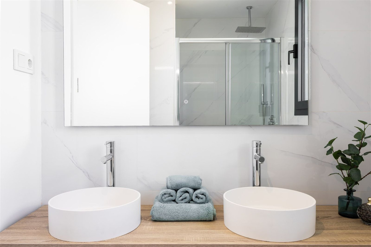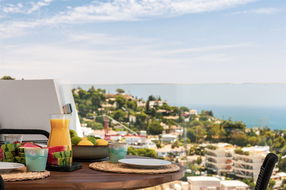 The generous corner terrace faces east, south, and west, providing sunshine from morning until evening – perfect for sunrise breakfasts, long sun-filled days, and atmospheric sunsets. Thanks to the open corner location, light streams in from multiple directions, creating an airy and inviting atmosphere throughout the home. From the terrace, you can enjoy breathtaking views of the Mediterranean.
