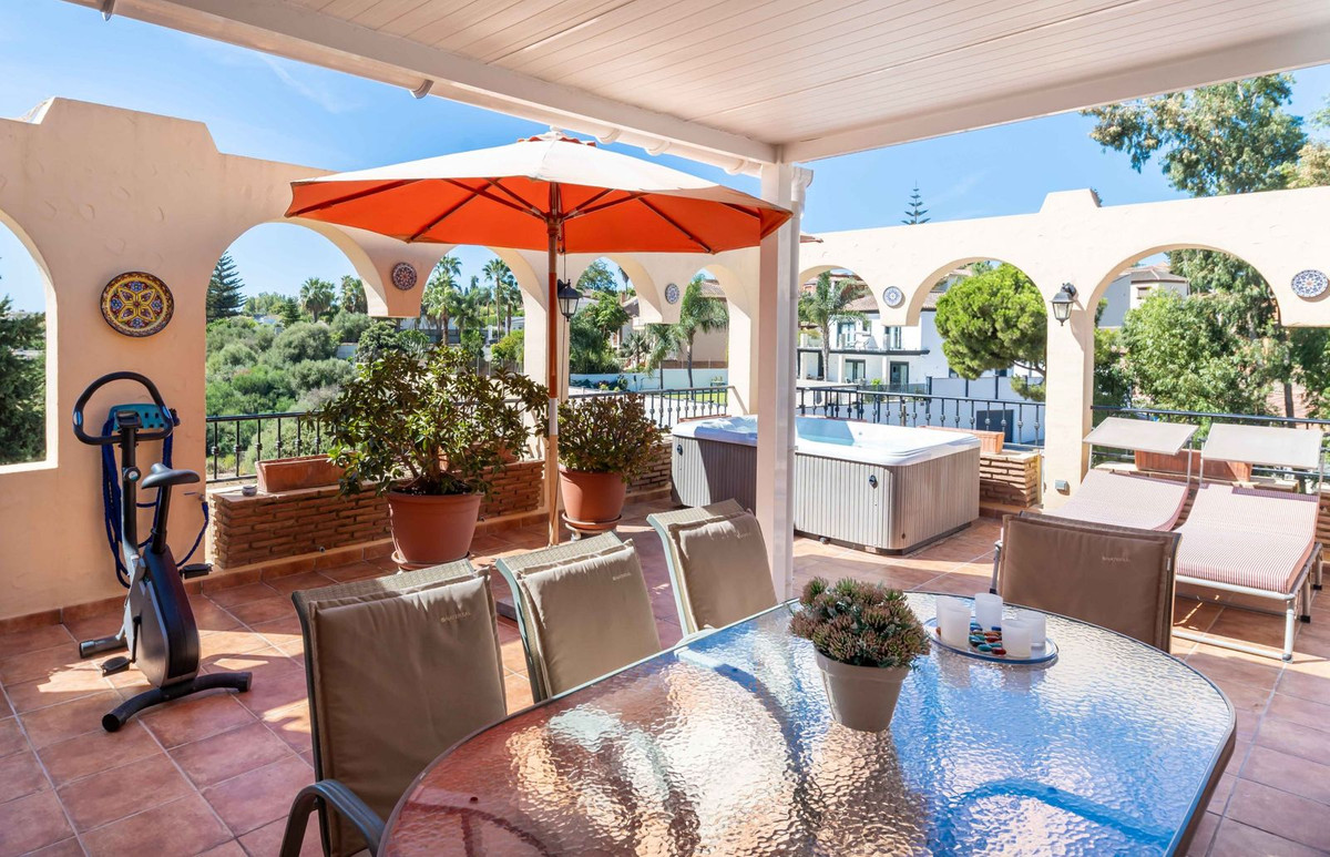 The terrace is undoubtedly the heart of the home: an ideal spot to enjoy the Costa del Sol lifestyle, featuring a beautiful jacuzzi where you can unwind while taking in the sea views. It's the perfect place for sunbathing, dining with friends, or simply relaxing in total privacy.