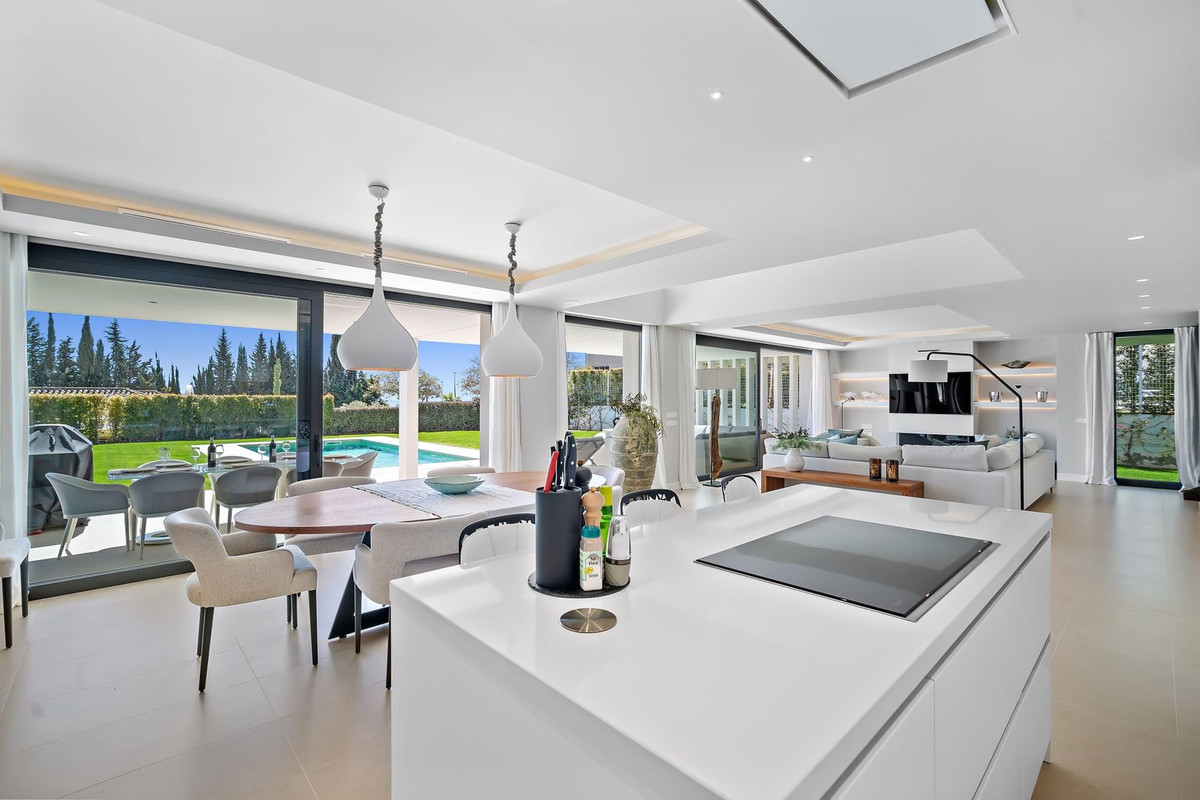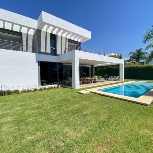 Contemporary villa with great sea views and south facing, with large windows so all rooms are light and airy. The villa is in the municipality of Estepona, set between the mountains and the sea.