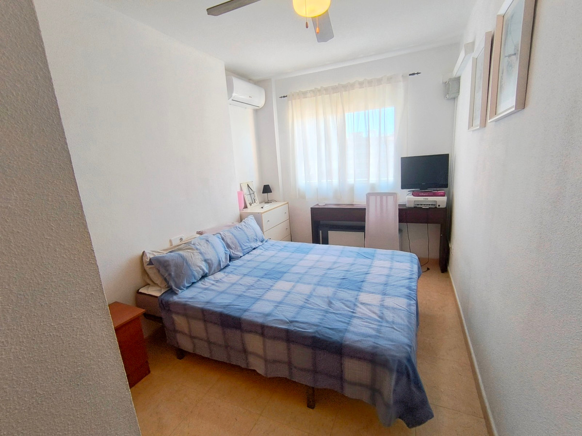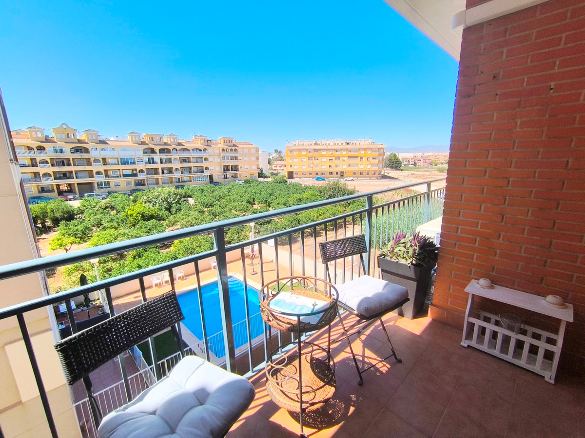 This two bedroom, two bathroom second floor apartment is located in the popular 'Mirador de los Palmeras' block on the outskirts of Almoradi.