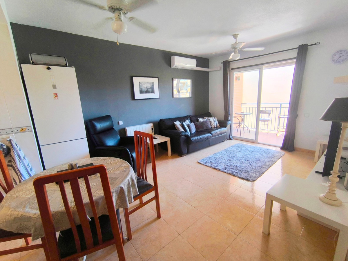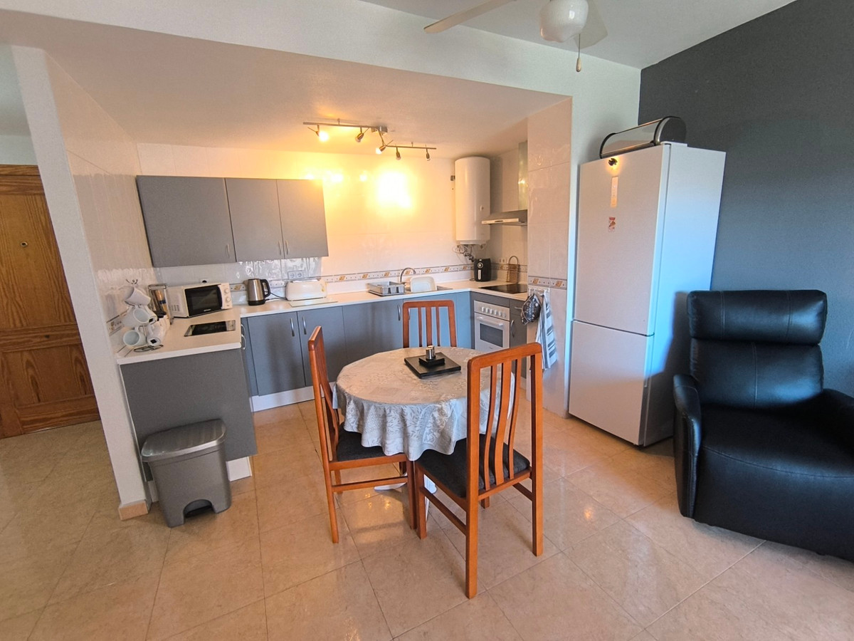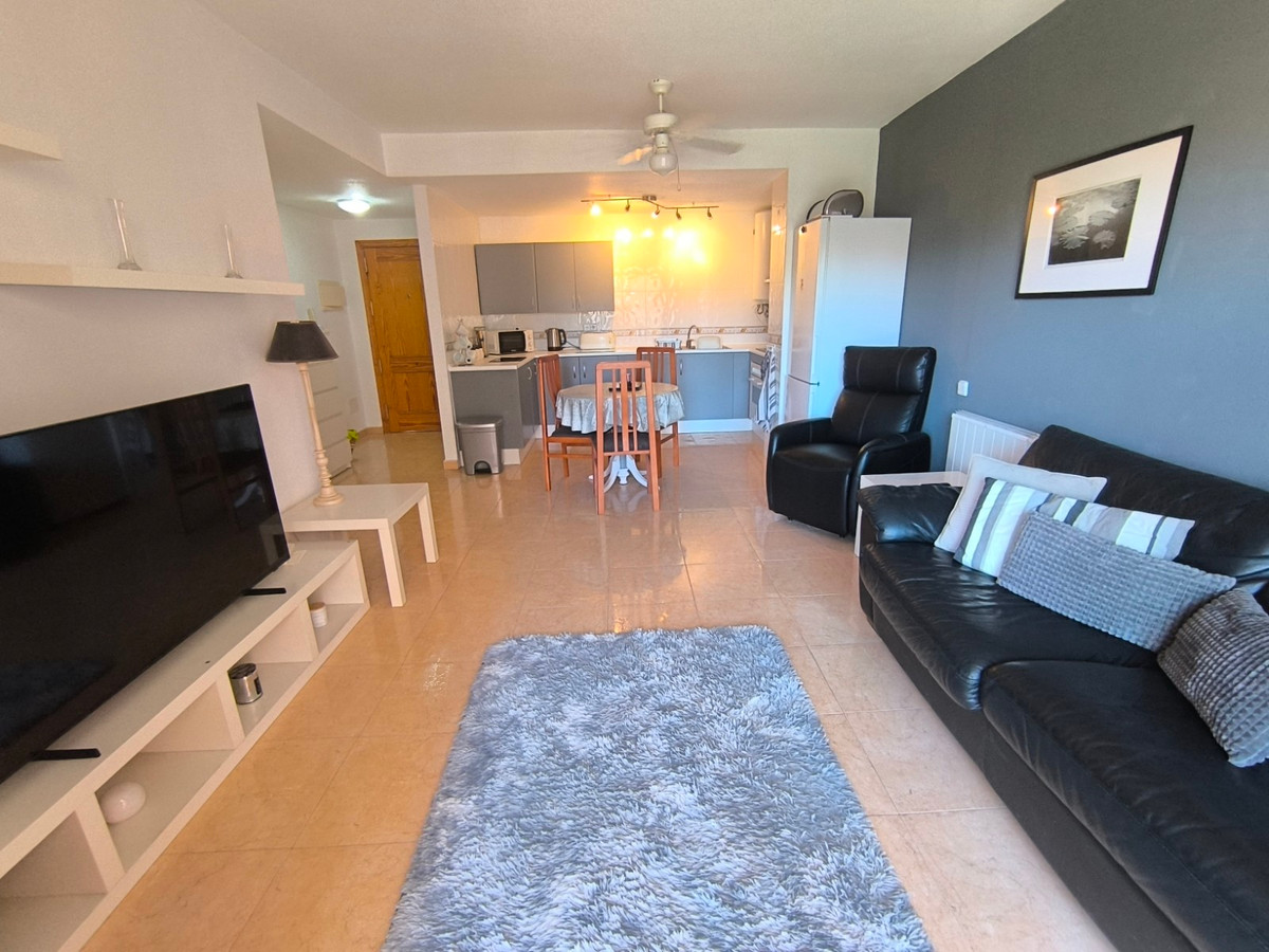You enter into a spacious open plan kitchen/living and dining area with balcony at the end. The kitchen has been refitted to include a range of wall and base units, built in oven and hob along with a freestanding fridge freezer. The pleasant balcony faces west and overlooks the pool and garden of the neighbouring block.