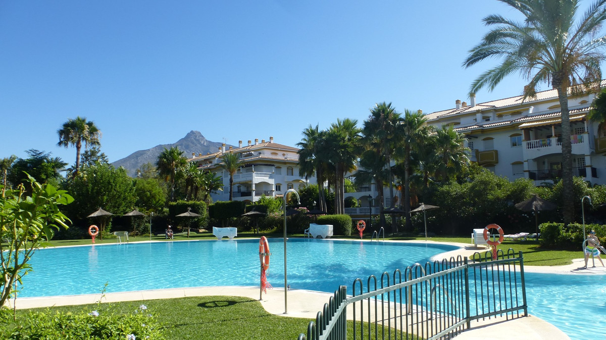 This complex offers large landscaped gardens with sports facilities, paddle tennis courts, children's playground, lovely walk ways and paths with seating areas, and 2 lagoon-style swimming pools. 24hrs security service. next to La Dama de Noche golf course.