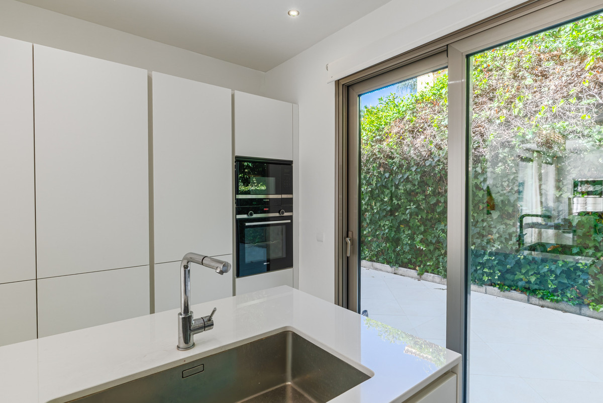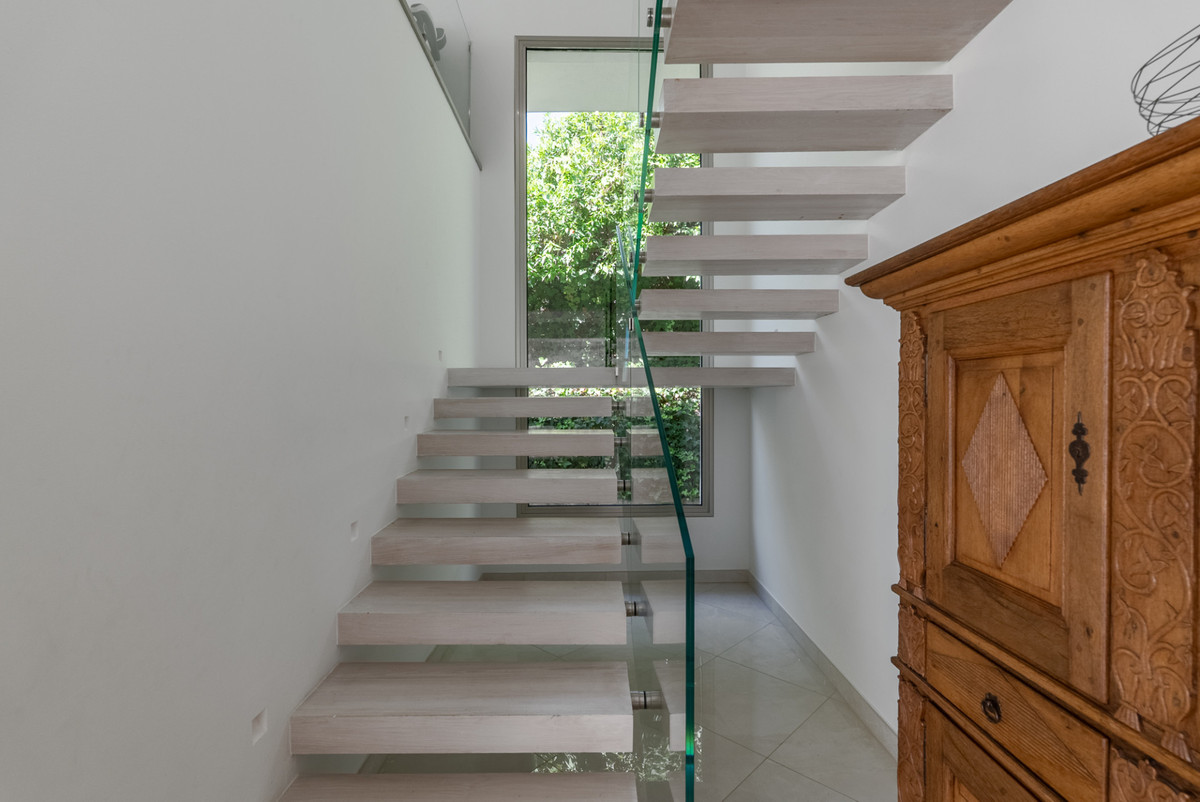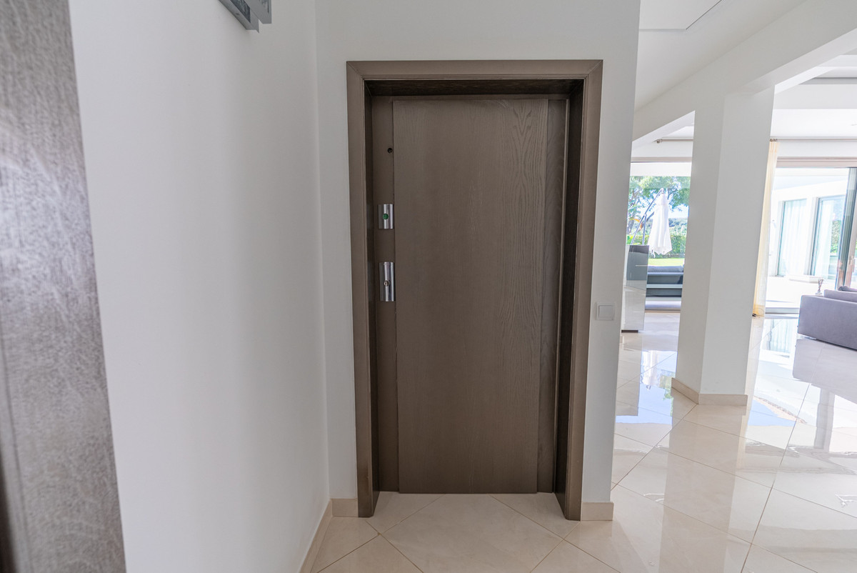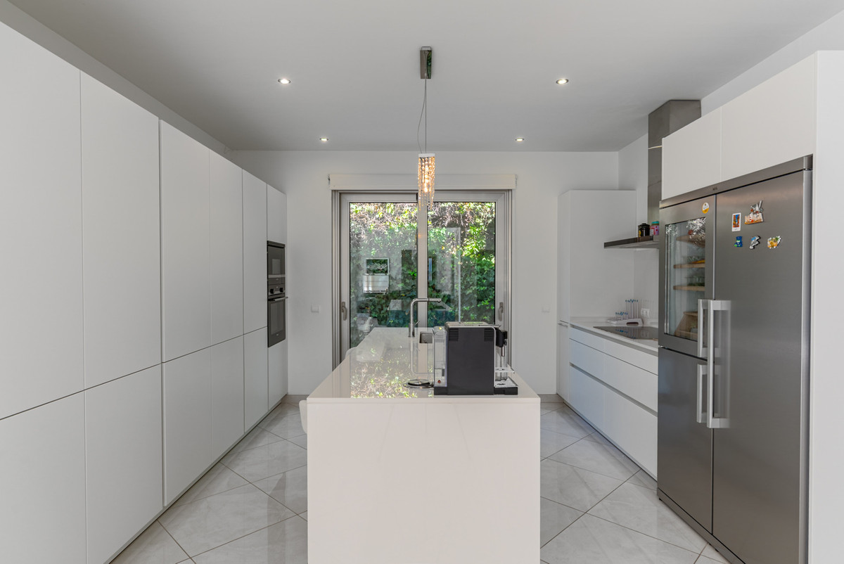 The semi-basement includes a garage with space for up to three cars, along with a service area and storage. There is also private access from the street, and architectural plans are available to convert part of this space into a separate guest apartment, should the new owners wish to expand. A built-in lift connects all floors of the property, ensuring full accessibility.