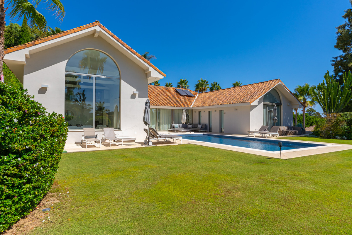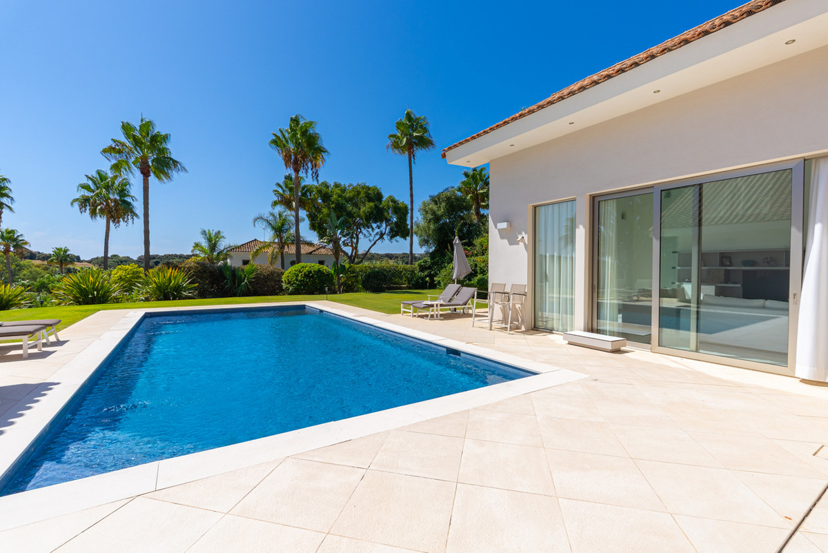 This beautifully renovated villa is located in one of Sotogrande's most prestigious areas, just steps from the world-renowned Valderrama Golf Course. Designed in an elegant Mediterranean style and upgraded with contemporary finishes, the property offers the perfect blend of charm, comfort, and functionality.