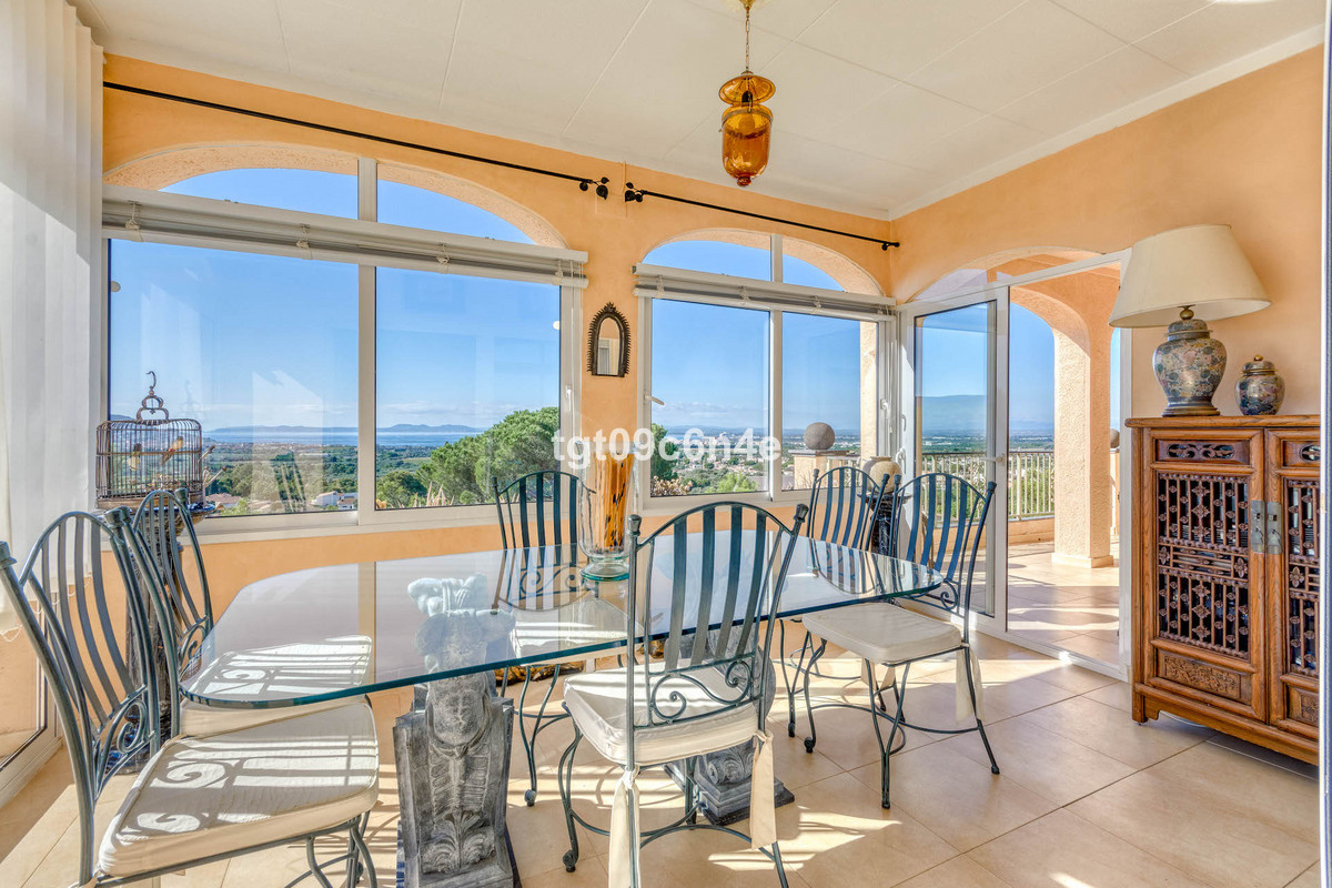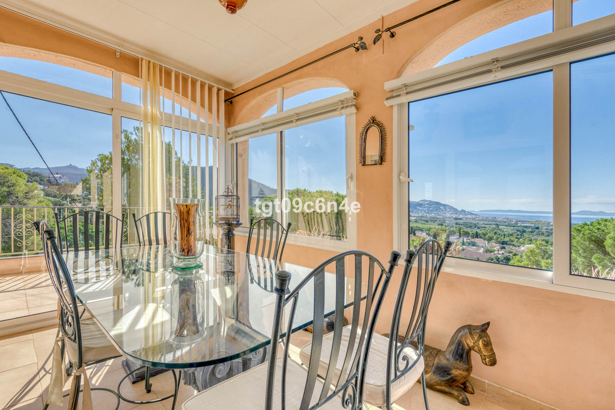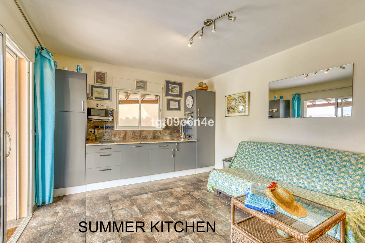On the main floor (first floor): large living room of 30 m2 with fireplace; a beautiful veranda used as a dining room, with stunning sea views; an uncovered terrace (solarium) on one side and a partly covered terrace on the other, both with panoramic views; the kitchen of 14 m2; a small dining room next to the kitchen.