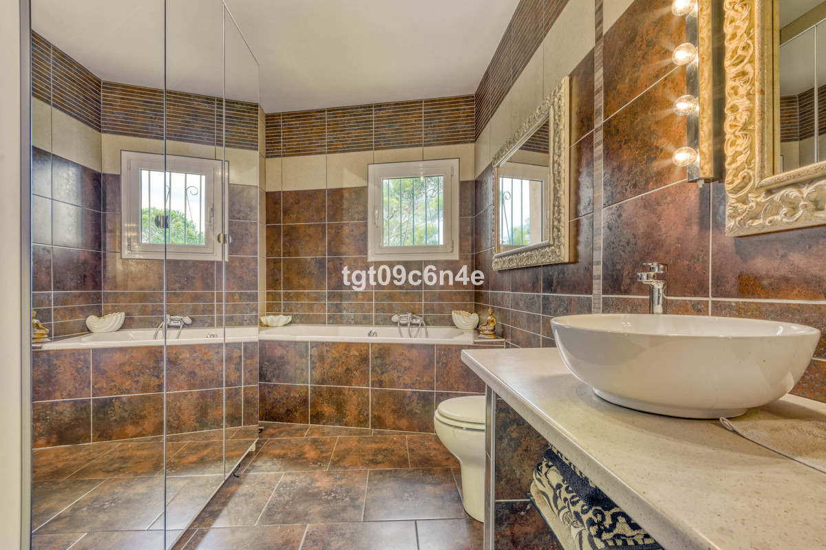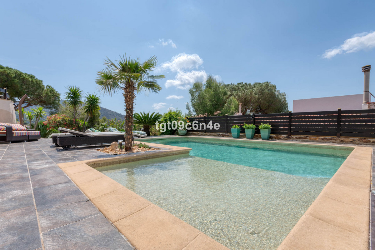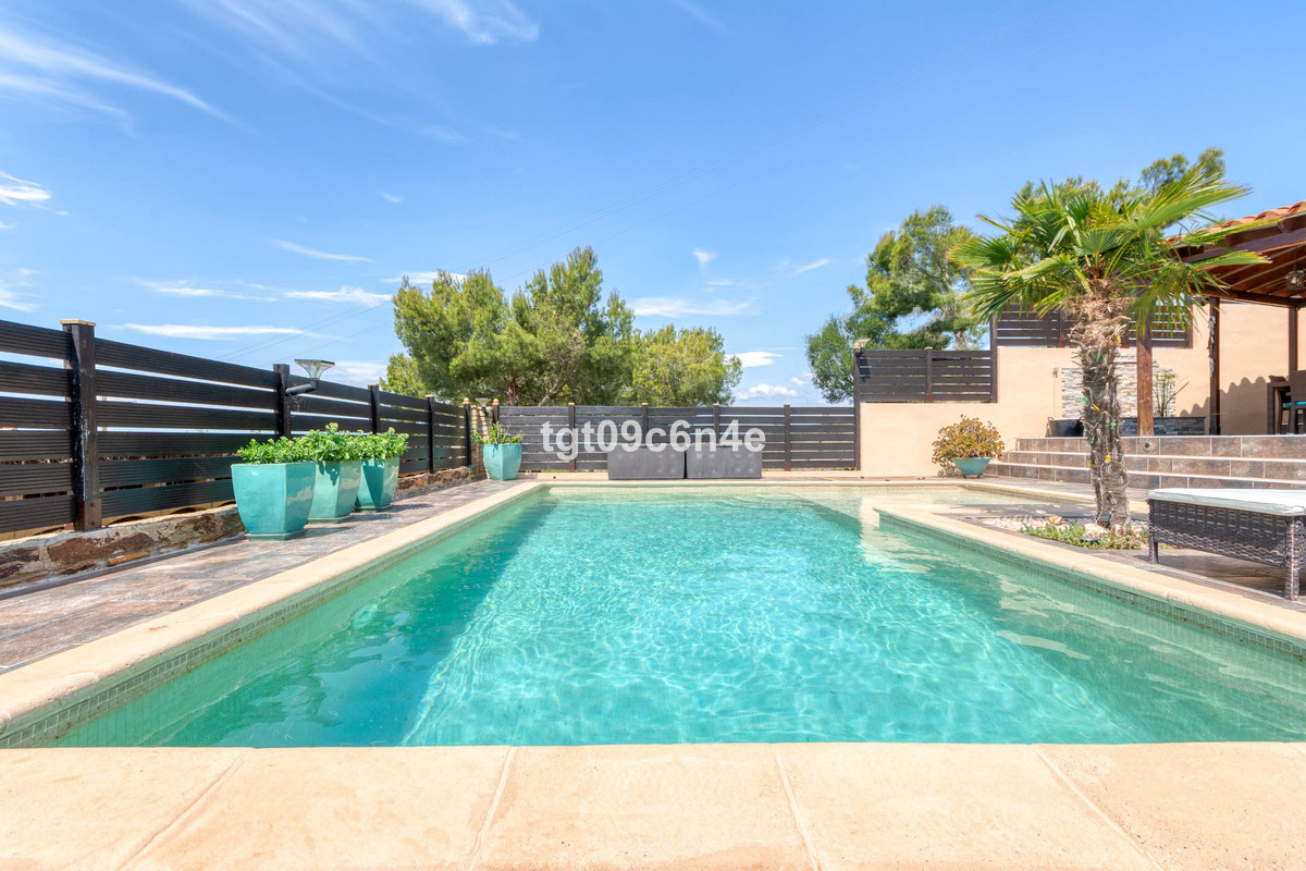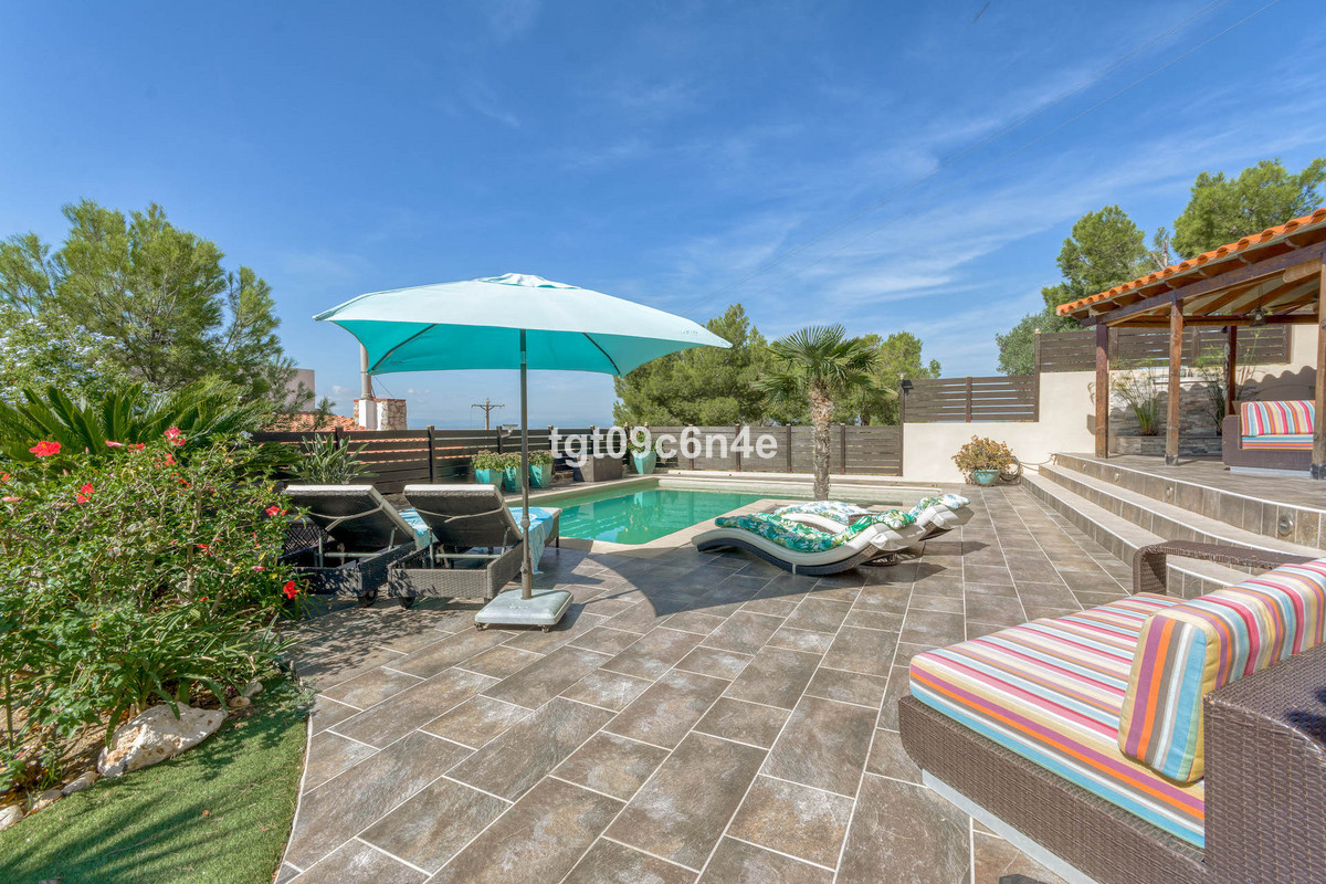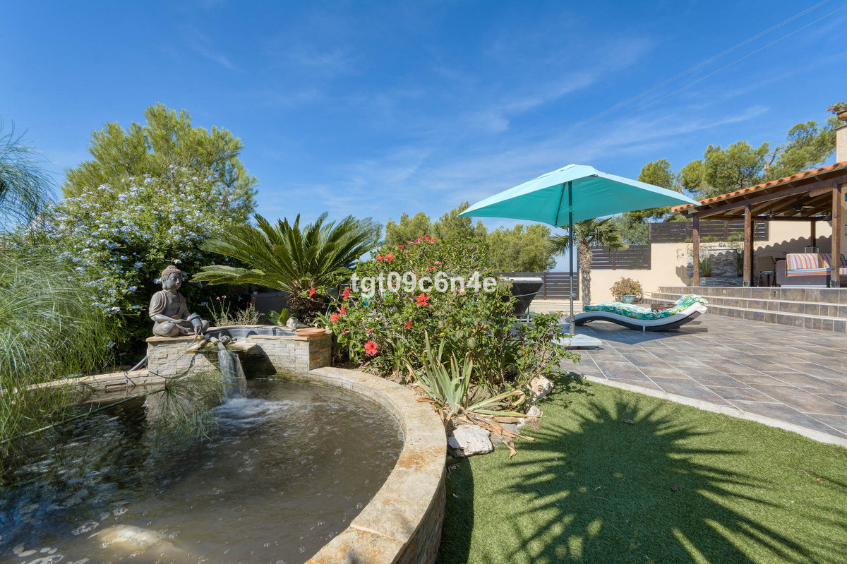 The swimming pool area is truly spectacular, with its covered terrace, its palm and a beautiful fish fountain next to it. Well maintained garden, with mature trees (pines) and several kinds of plants.